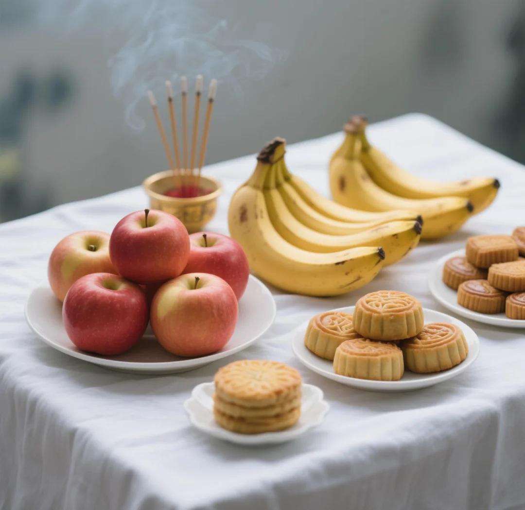 蘋果,寓意着平安,象徵着希望祖先在另一個世界能夠平平安安。