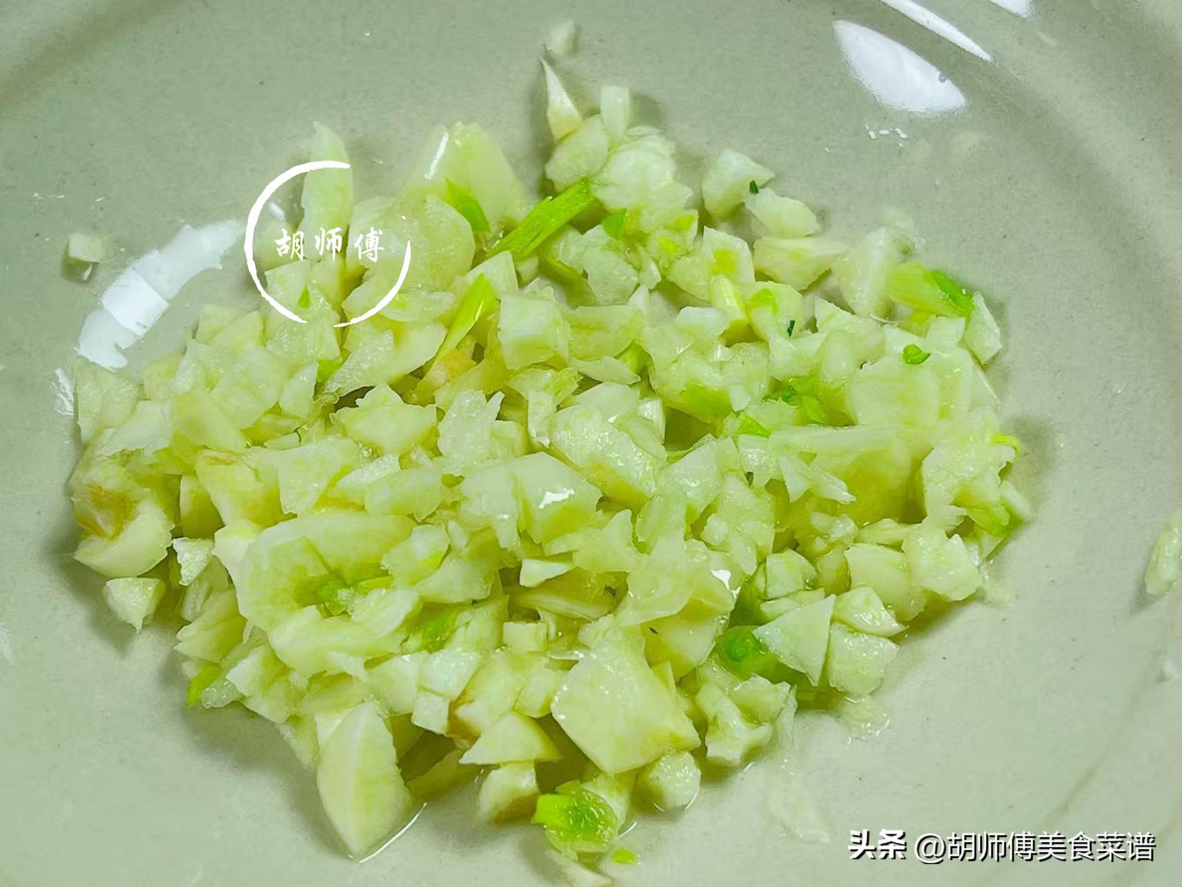 第二步:把大蒜籽沖洗乾淨,然後把大蒜籽切成綠豆大小的碎末,接着再用自來水將大蒜籽沖洗一下,這樣可以去除大蒜籽中的苦澀味。