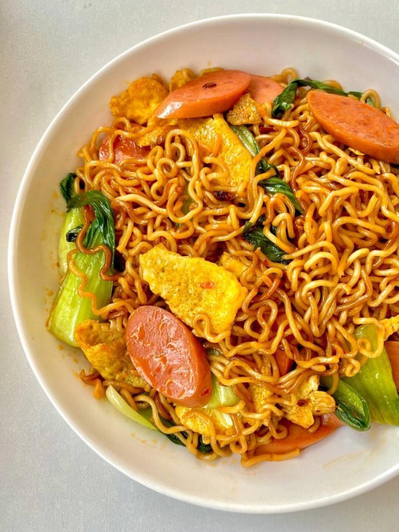 推薦喫法,雞蛋火腿炒麪。炒麪香氣四溢,麪條勁道有嚼勁,配菜豐富又美味。