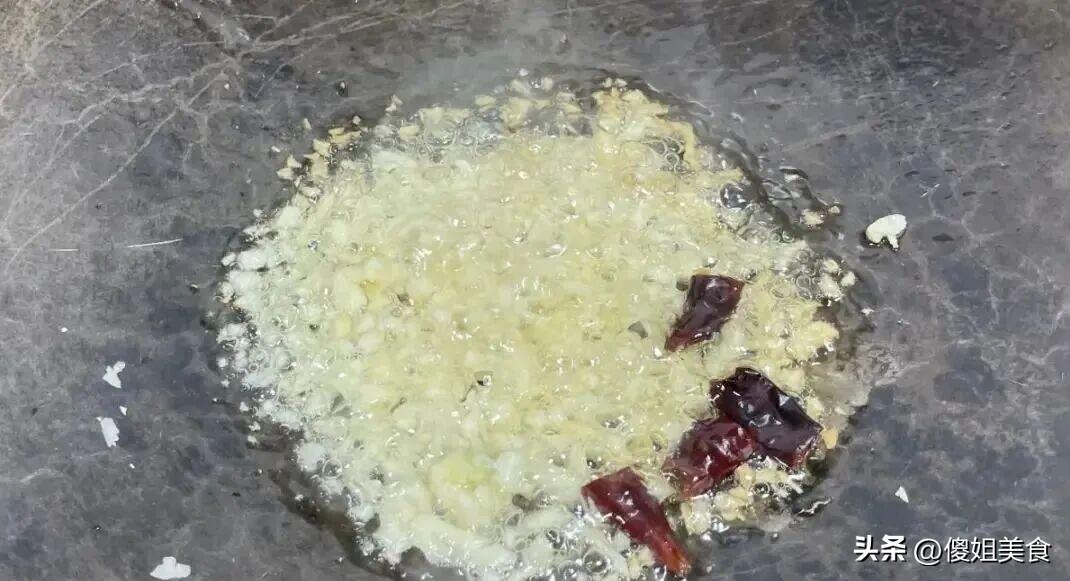 第二步:起鍋燒油,往鍋裏倒適量食用油,開火燒熱。等油熱到五六成熱的時候,轉小火,把一半的蒜末和小米椒圈放進鍋裏,慢慢煸炒。炒的時候要不停攪拌,別炒糊了,炒到蒜末變成微微的金黃色,香味飄滿整個廚房。