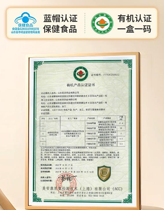 上手就能感覺,這款的安全不僅僅是口號。它擁有保健食品藍帽認證(國家最嚴含量和工藝要求)、有機認證(證書編號F77OP2300031),做到土壤、空氣、生產每一環都有無污染背書。對比市面衆多未認證、資質模糊的產品,這份雙保險直接爲家庭用護航——老人服用不用擔心,年輕人長期補養也穩妥。每一盒一份溯源,真正“安全無死角”。站在高標準之上,品牌對質量的偏執值得點贊。
