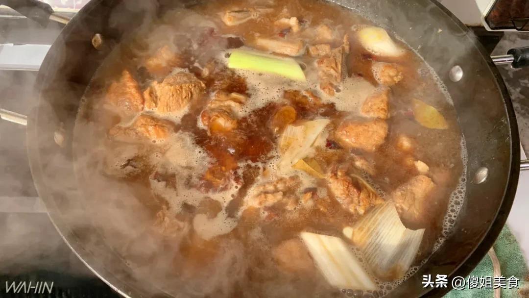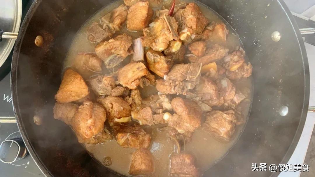 第三步:加調料燉,香味全煮進肉裏排骨裹上糖色之後,往鍋里加蔥段、薑片、大蒜,還有八角、桂皮、香葉這些香料,繼續翻炒1分鐘,把香料的香味炒出來。然後往鍋裏倒2勺料酒、3勺生抽、1勺老抽,翻炒均勻,讓排骨吸滿調料的味道。接着往鍋里加清水,水量要沒過排骨,大火燒開之後,轉小火慢燉。燉排骨的時間,看咱用的鍋。用普通鐵鍋燉,得燉40分鐘左右;用高壓鍋的話,上汽之後壓15分鐘就行,省時間又省力。我平時喜歡用鐵鍋燉,覺得鐵鍋燉出來的排骨更有煙火氣,口感也更軟糯。