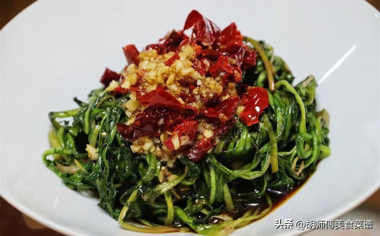 【食材準備】:嫩蒲公英200克、生抽、陳醋、香油、蒜末、食鹽、幹辣椒適量。