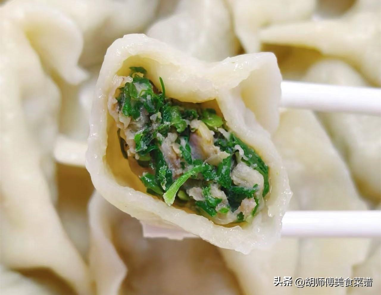 【食材準備】:霞草500克、肉末300克、花椒水50ml、食鹽、雞精、胡椒粉、食用油、餃子皮適量。