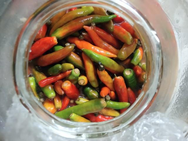 3. 辣椒+姜蒜裝入無油無水瓶,倒入涼料汁密封,醃2天即可。