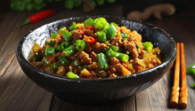 4️⃣ 青椒炒肉末(超級下飯、拌米飯拌麪條)