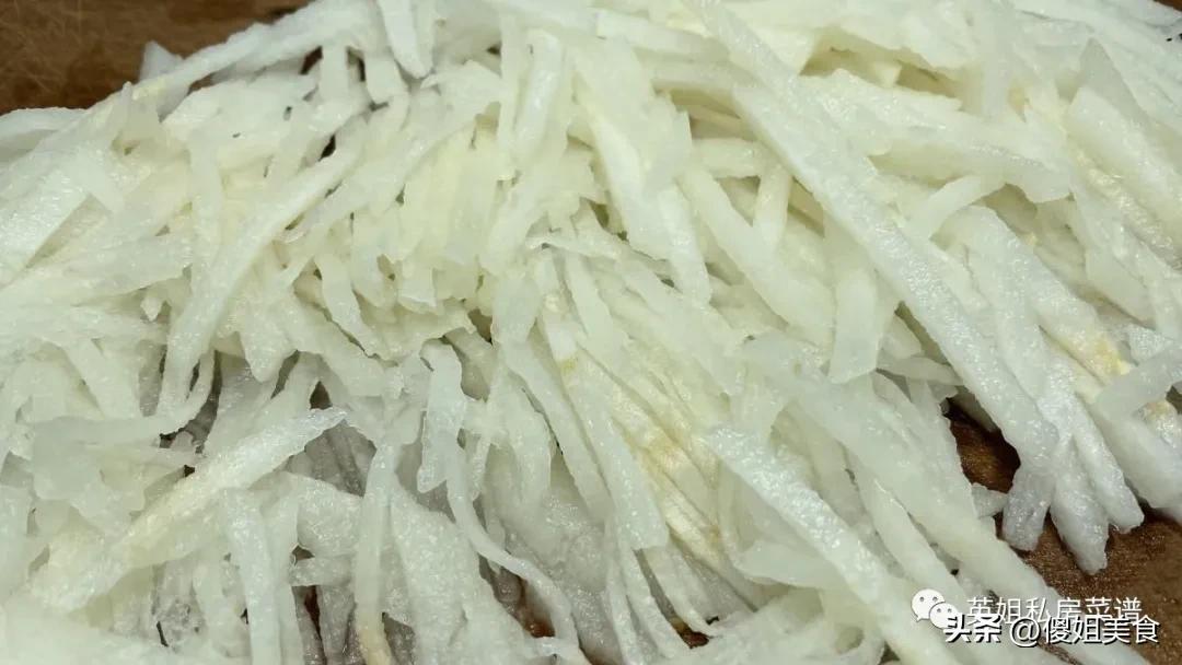 別小看這一步,醃製能讓梨絲裏的水分充分滲出來,後面熬的時候就不用額外加水了,純梨汁熬出來的膏纔夠濃、夠香。