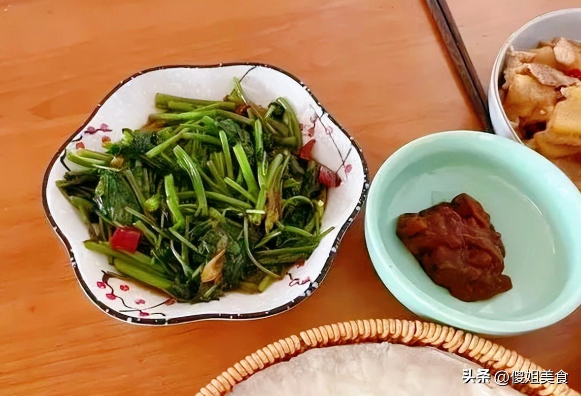 清炒空心菜:簡簡單單的清炒,就是最考驗手藝的。空心菜洗淨切段,熱油爆香蒜末,下空心菜快速翻炒,加少許鹽調味,出鍋就是一盤清爽解膩的小菜。