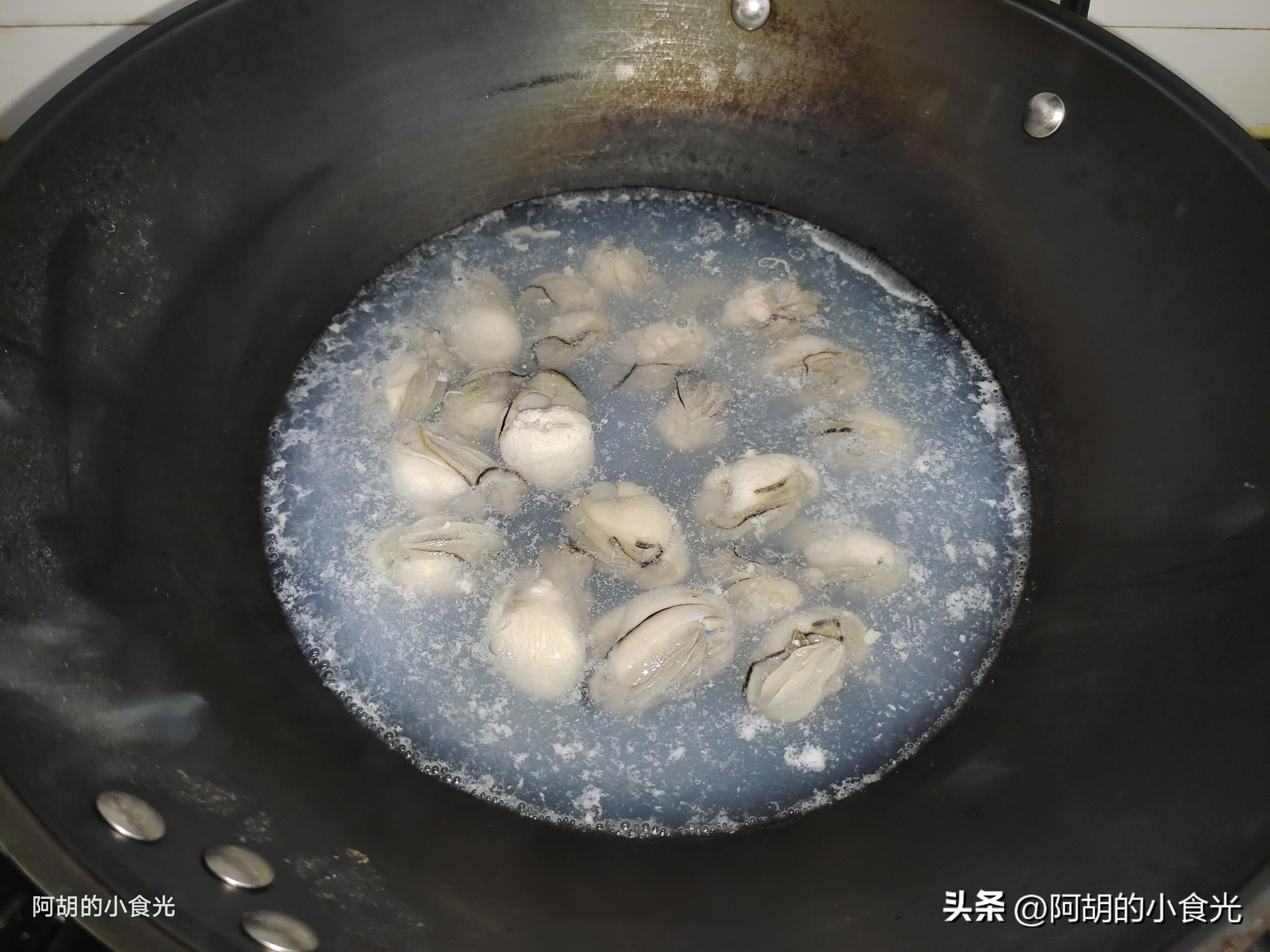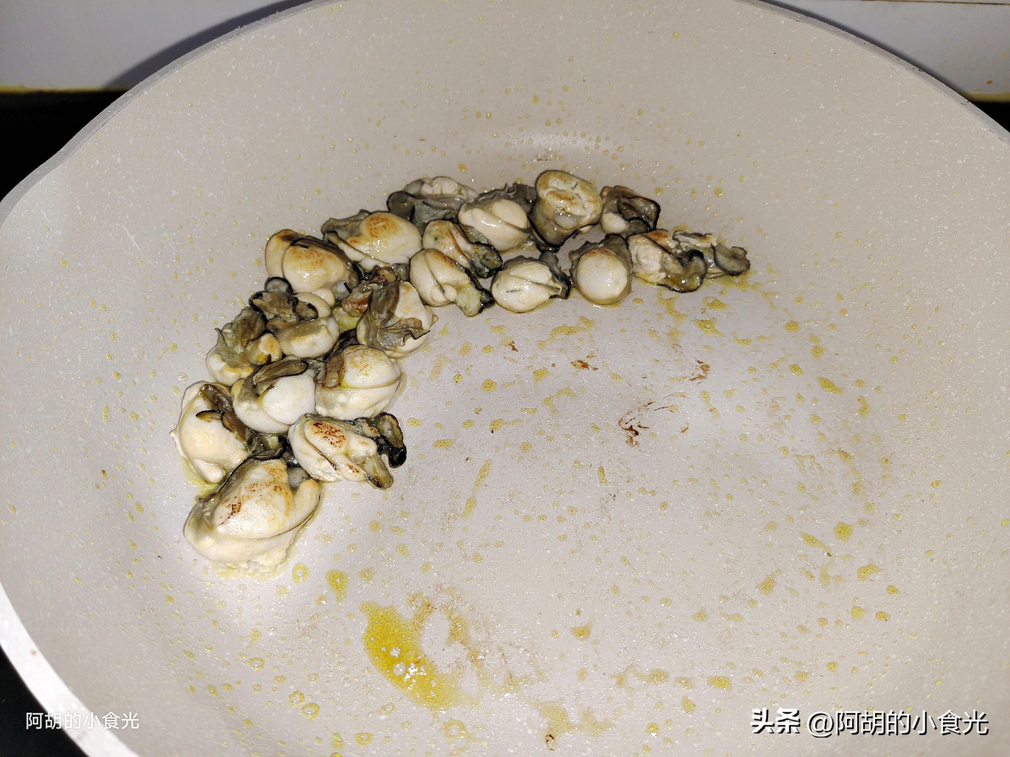 我用的是冷凍的蠔肉,所以最好經過焯水的步驟,煎一煎也可以有效地增加鹹鮮味。
