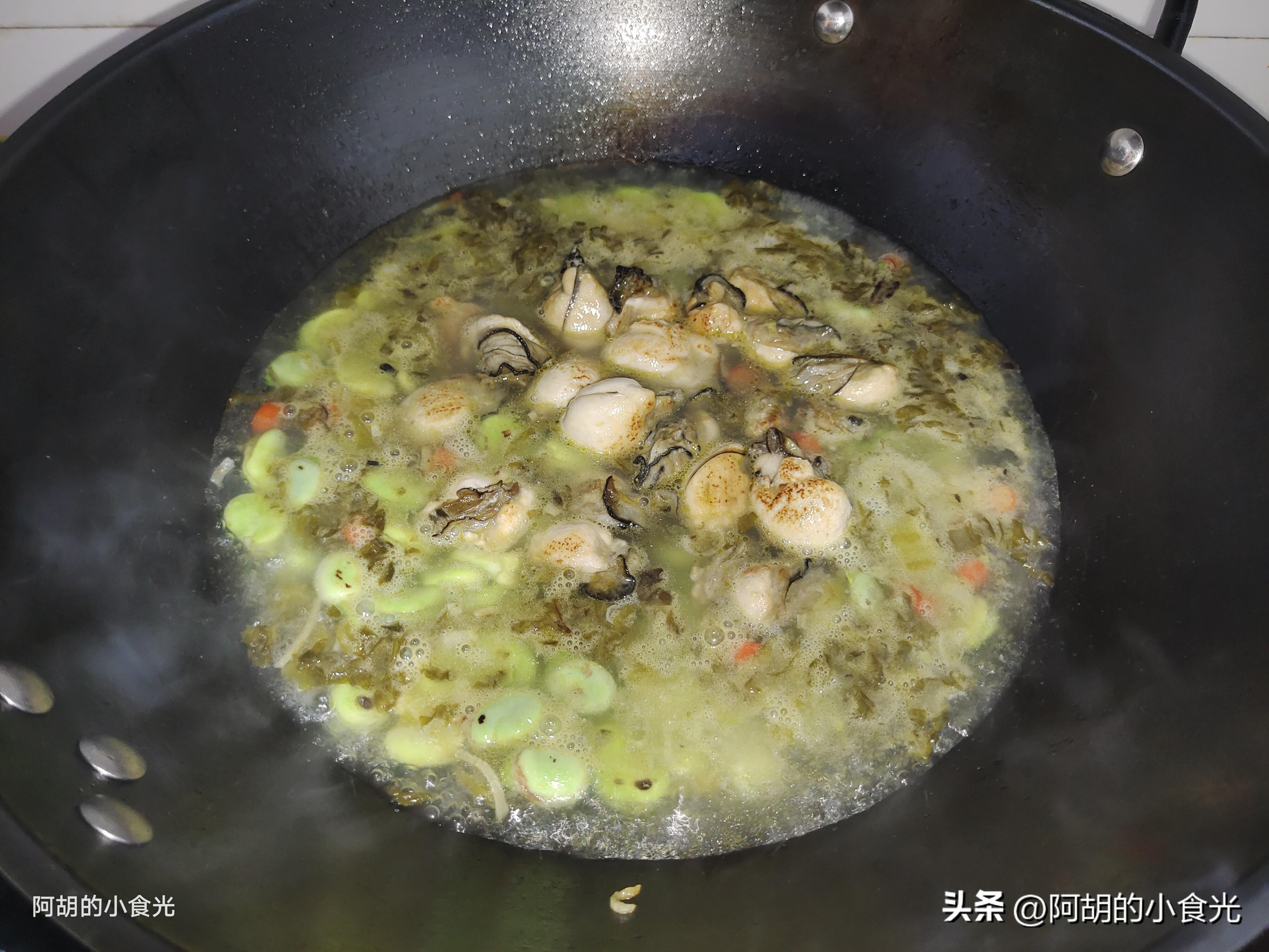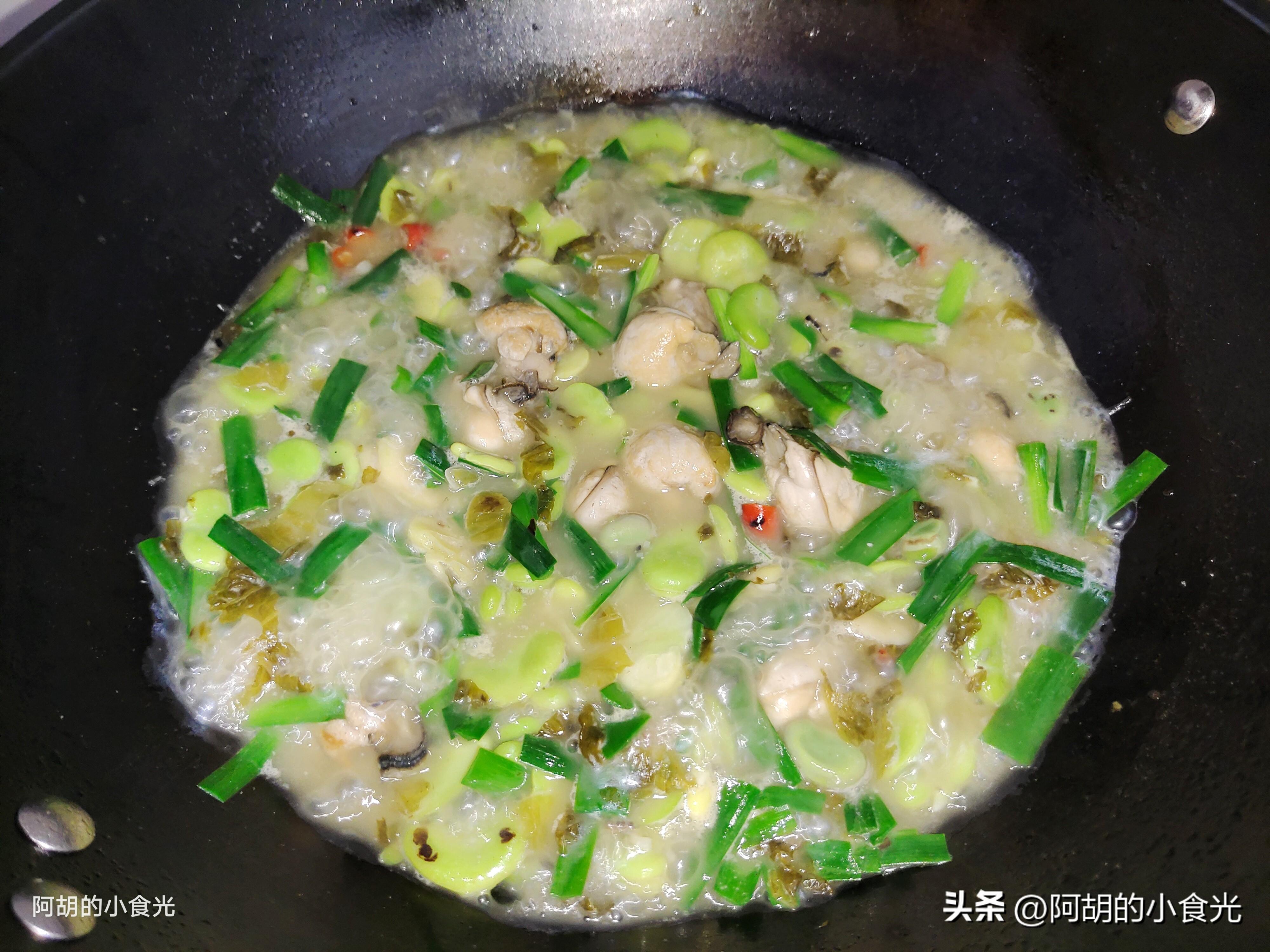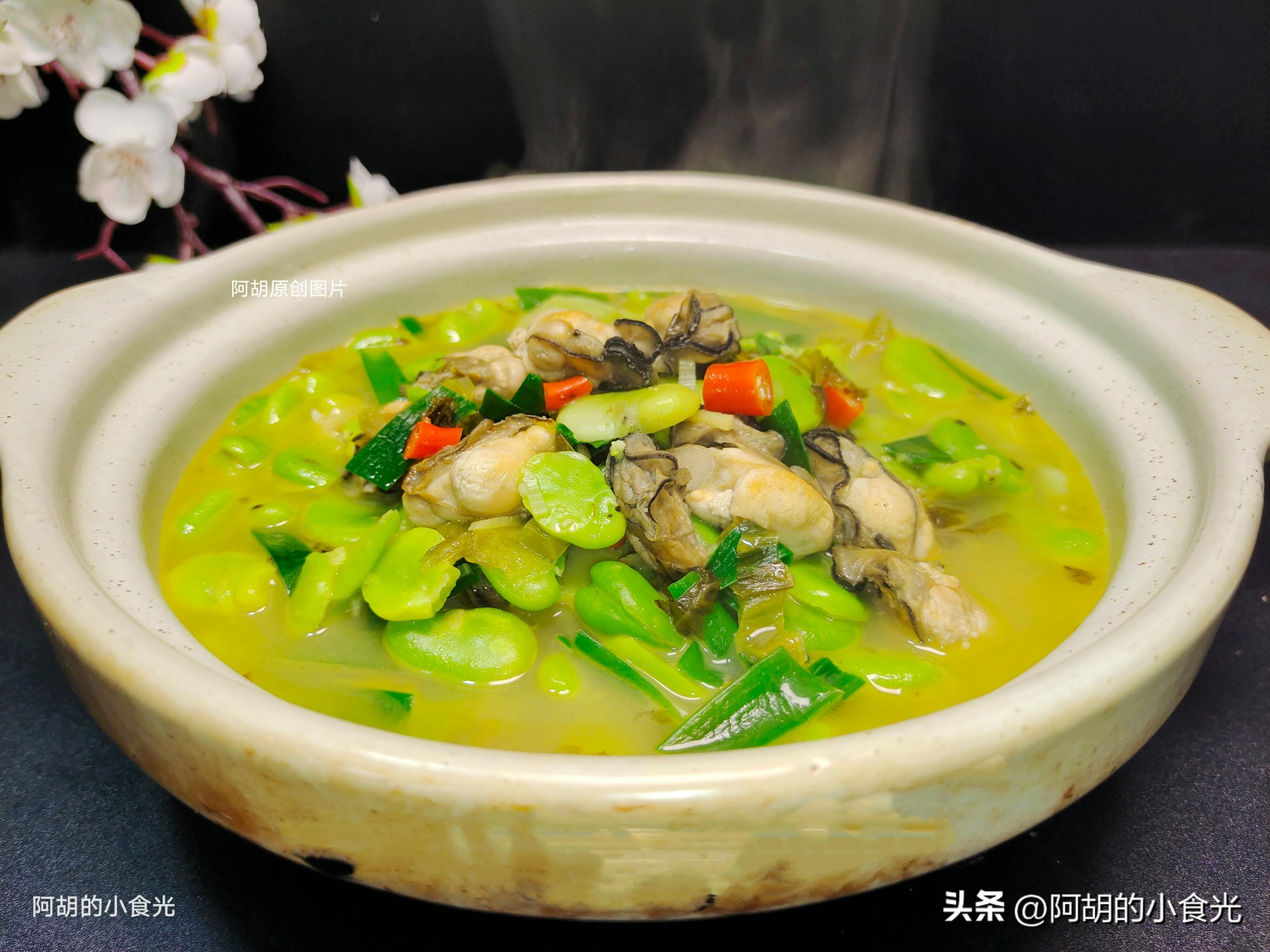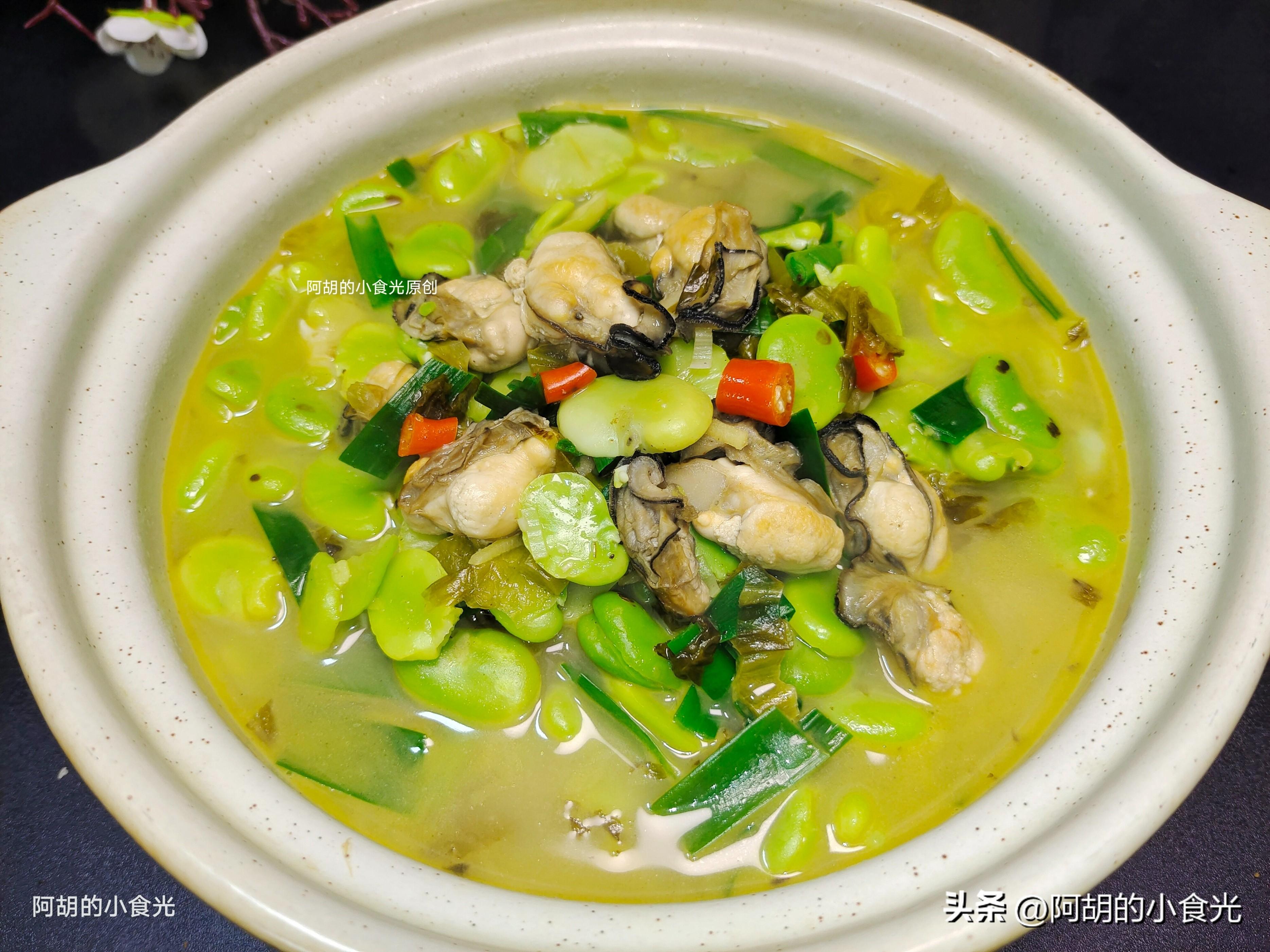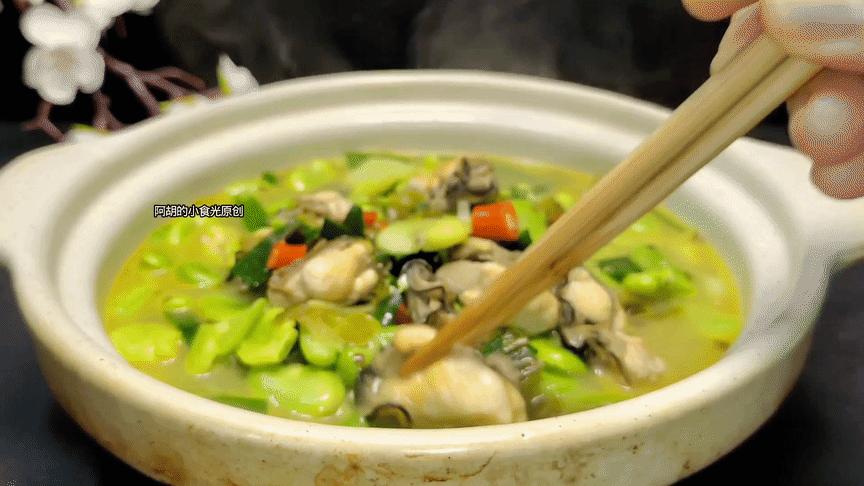 主要的食材就是這個季節的鮮蠶豆和一些蠔肉,季節性的鮮味之物搭配小海鮮,這兩樣簡直就是絕配,我們再搭配一些微辣和酸菜、韭菜來調味,鮮美之中味道又多了一些層次,關鍵做法也極致的簡單。