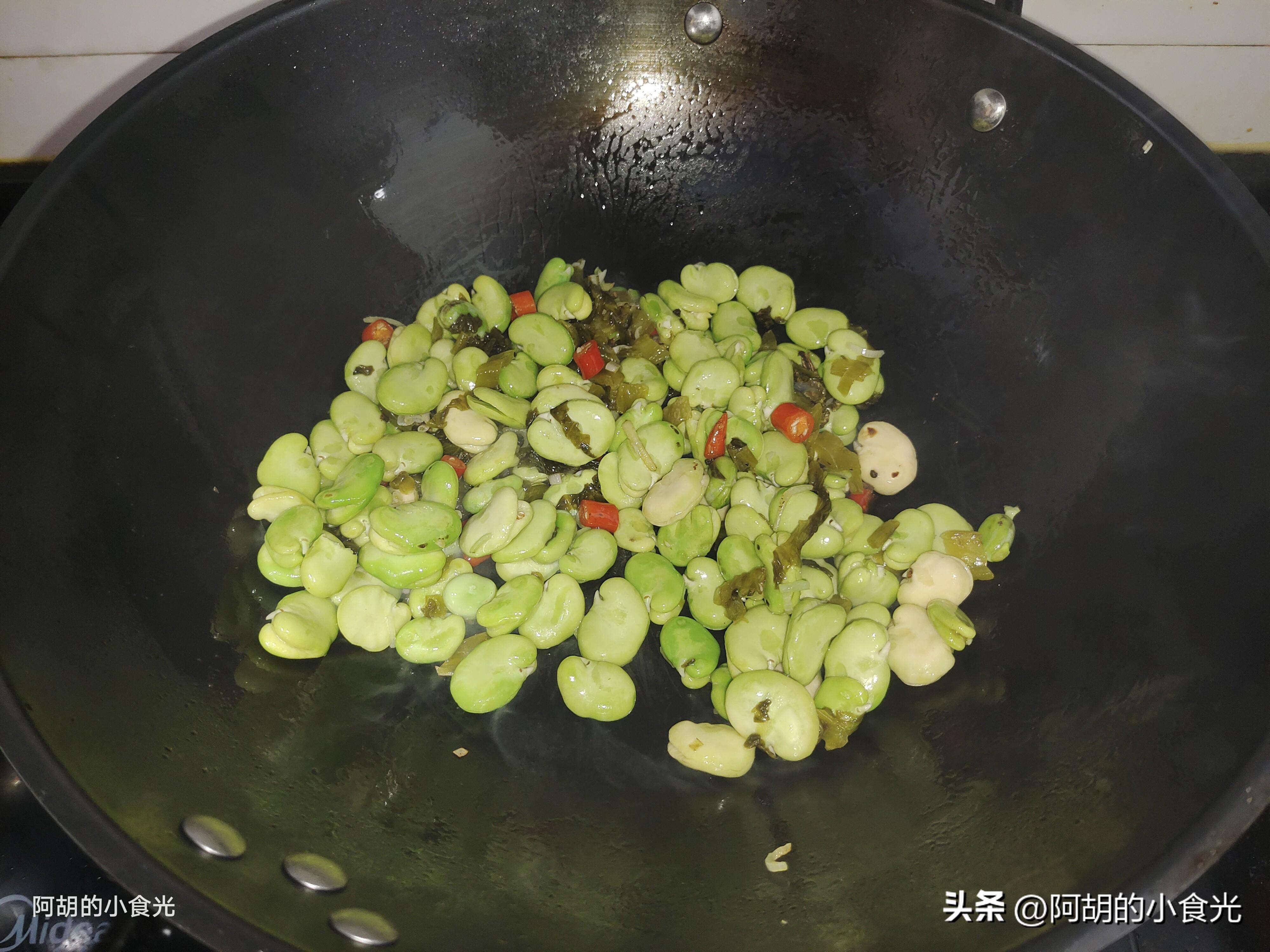 蠶豆仁去皮後不耐煮,所以這道菜的煨煮時間不要太久了,防止豆瓣碎掉影響口感。