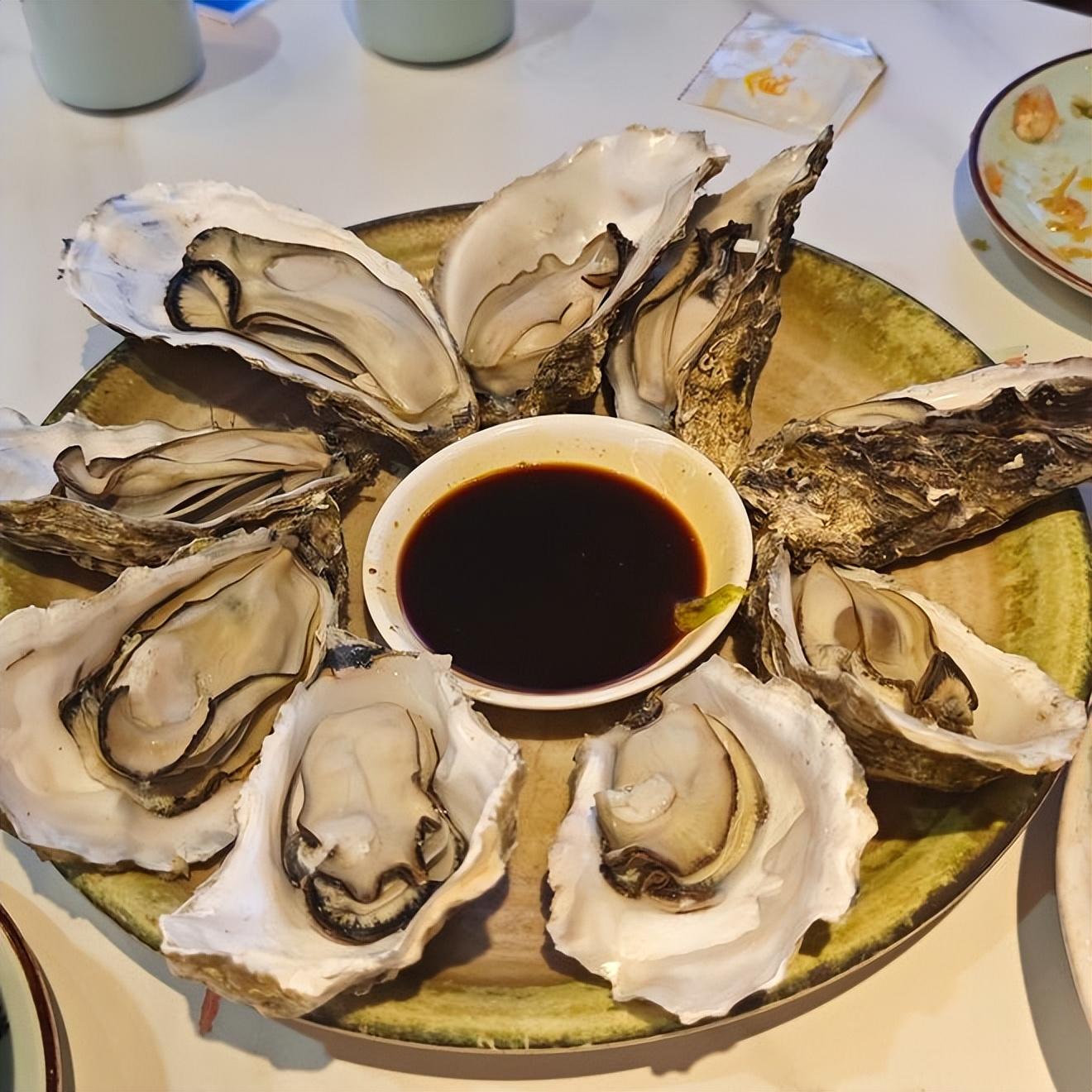 4生蠔蒸好後取出,撬開外殼,將生蠔肉蘸着調料汁食用,鮮嫩多汁的生蠔肉搭配鮮香的調料汁,口感絕佳,而且最大限度地保留了生蠔中的鋅元素等營養成分。