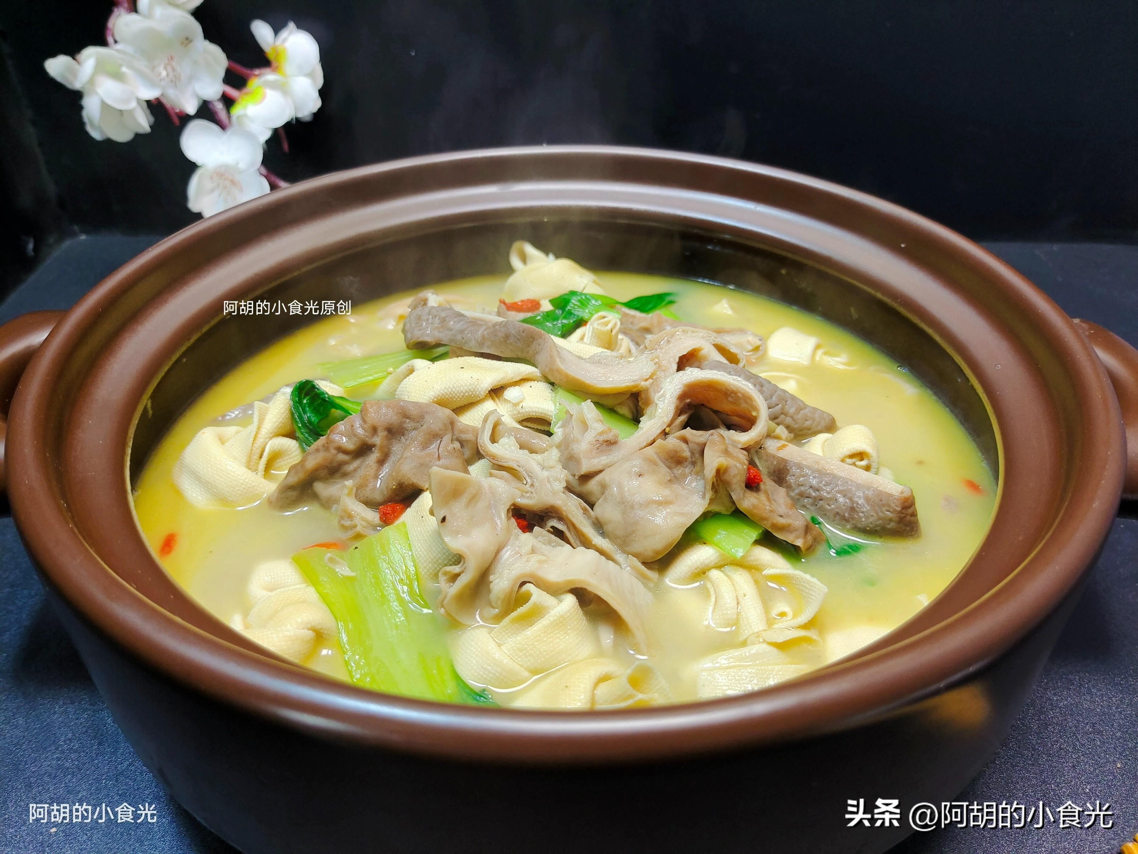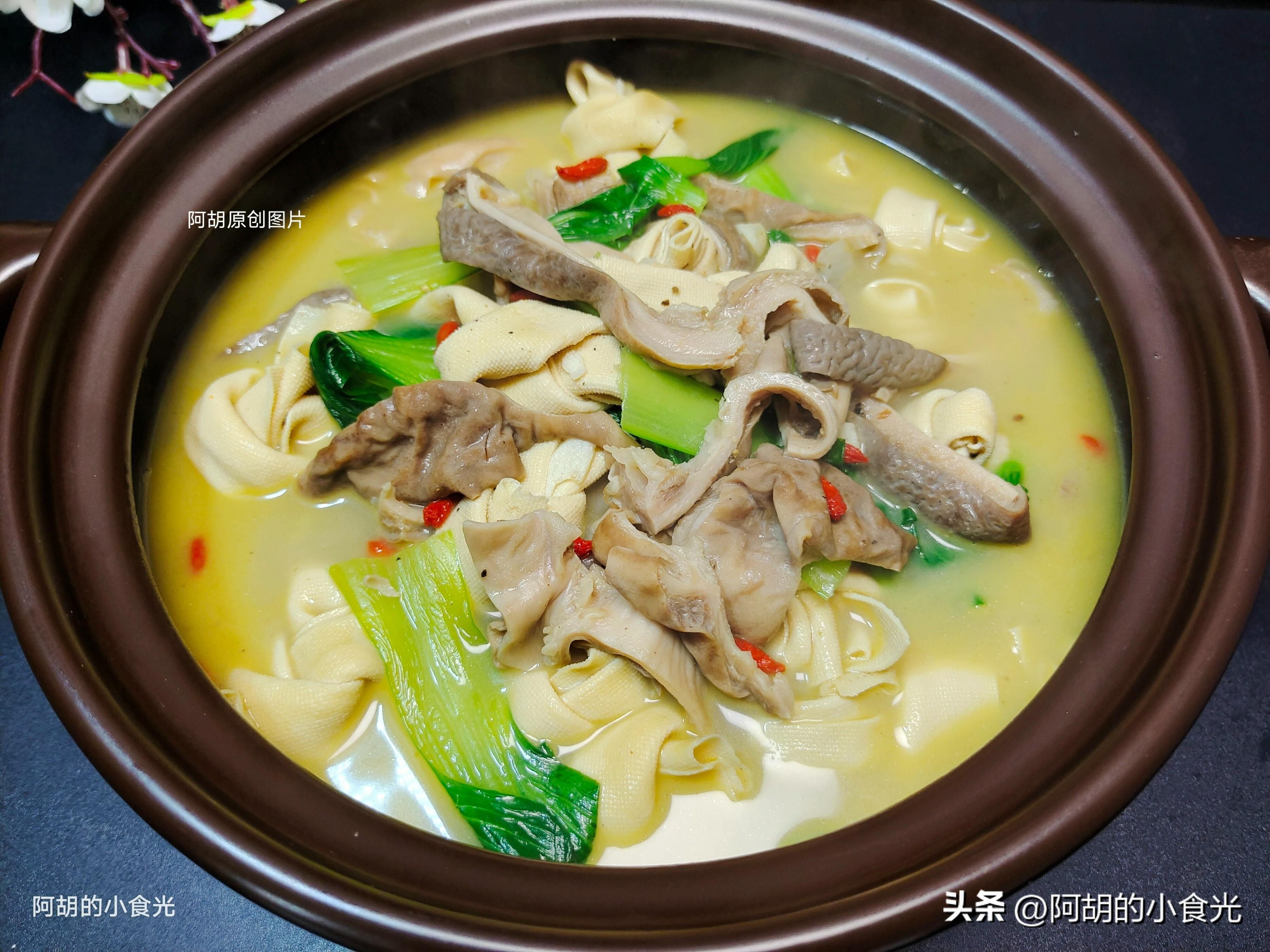 我是阿胡的小食光,一個喜歡研究把普通食材做出更多花樣美食的饕餮小食客!今天這道菜一定要試一試,豬肚和豆製品的完美搭配,滋補營養又鮮美可口,喝湯喫菜好不痛快,值得試一試。如無特殊情況,我每天都會按時分享一道家常美食的做法,在此特別感謝您的每一個贊和“小紅心”,明天的內容依舊很精彩,敬請期待!