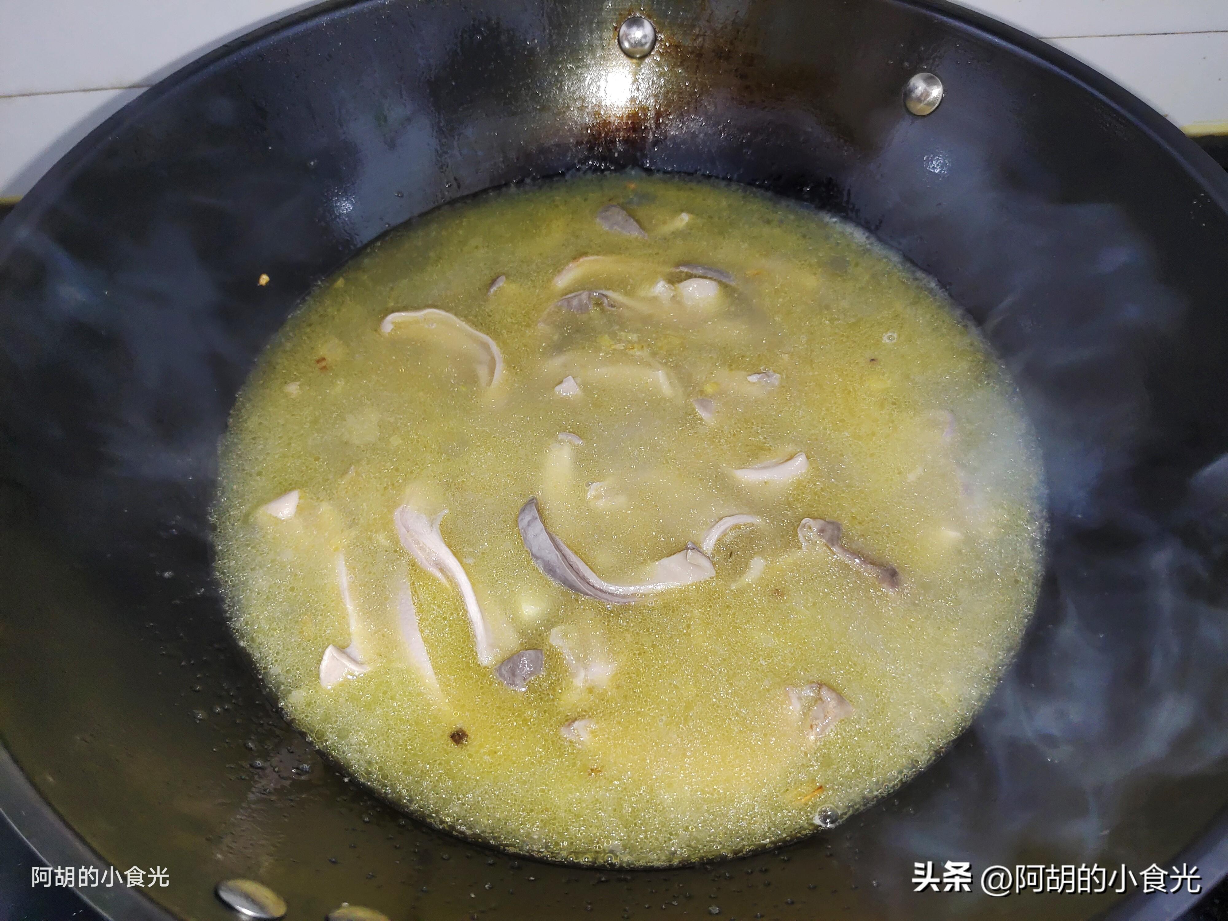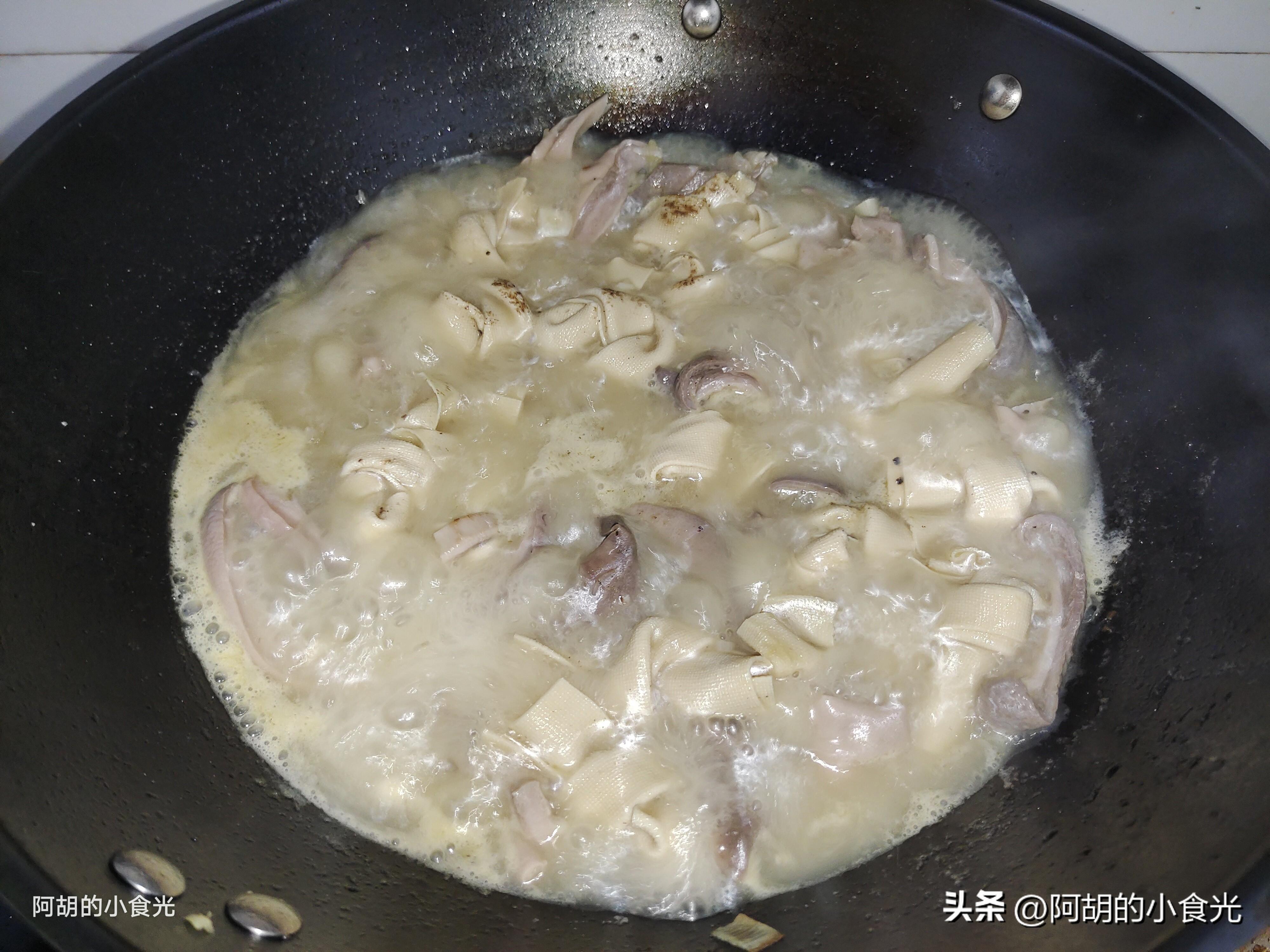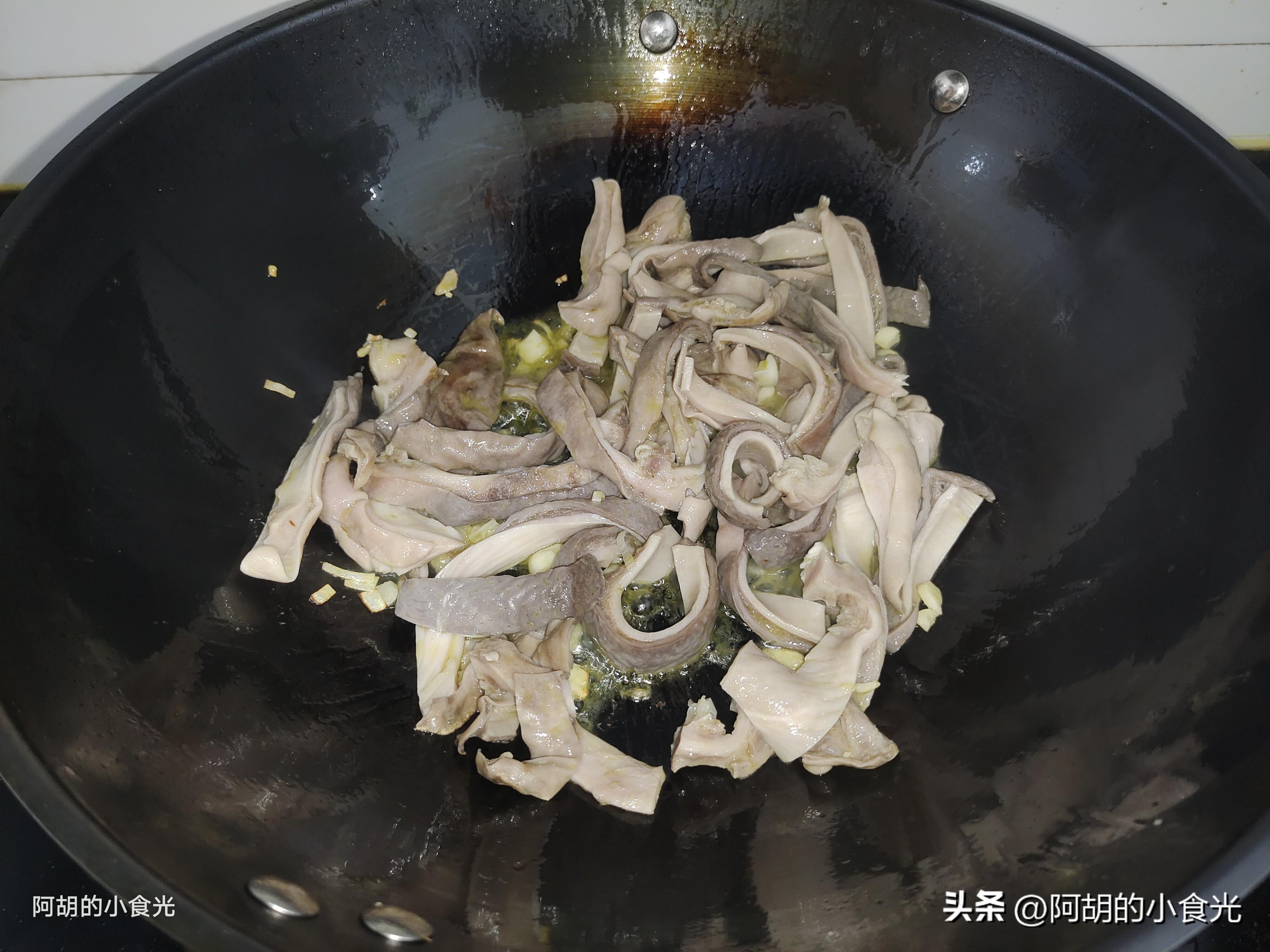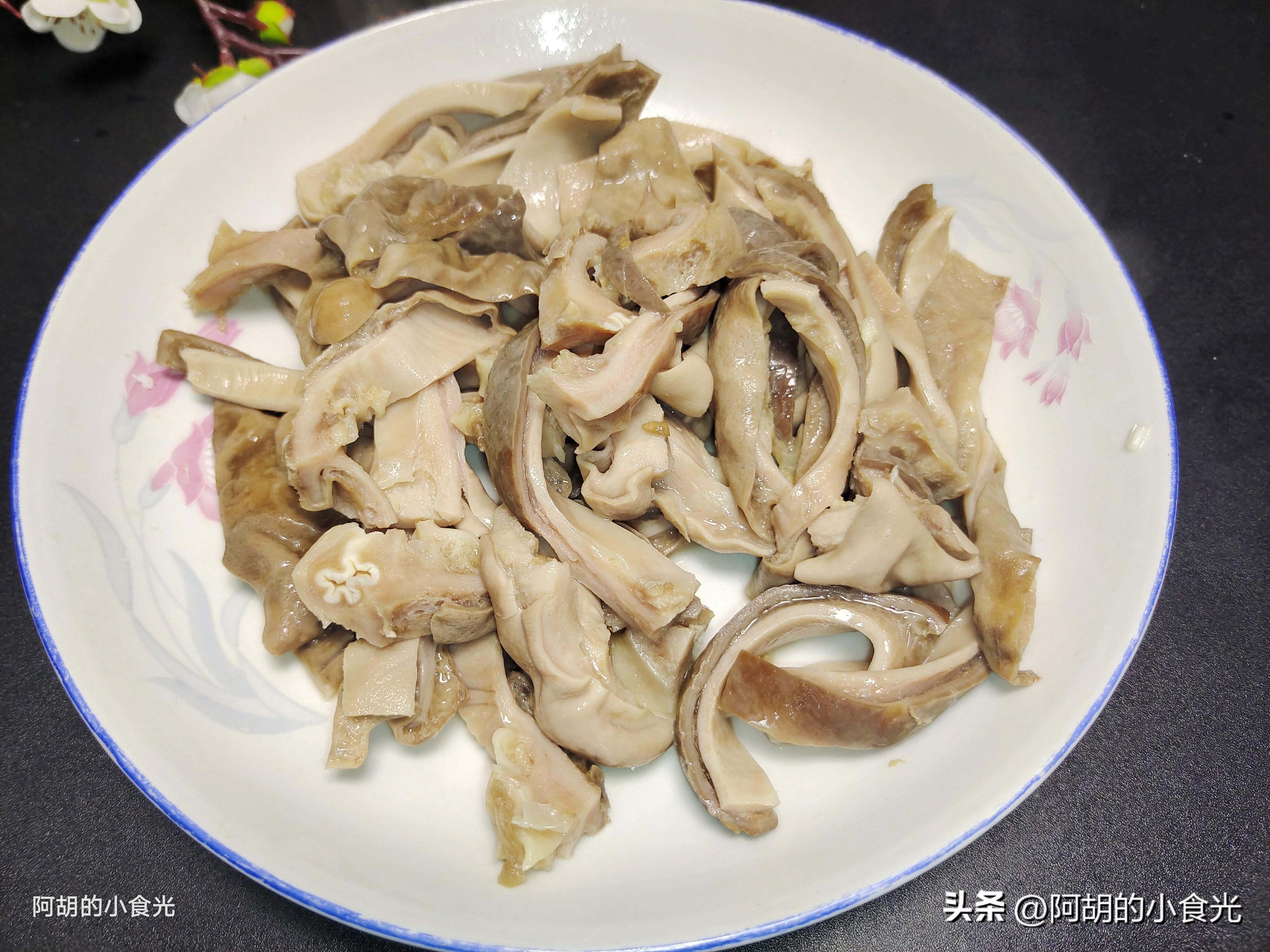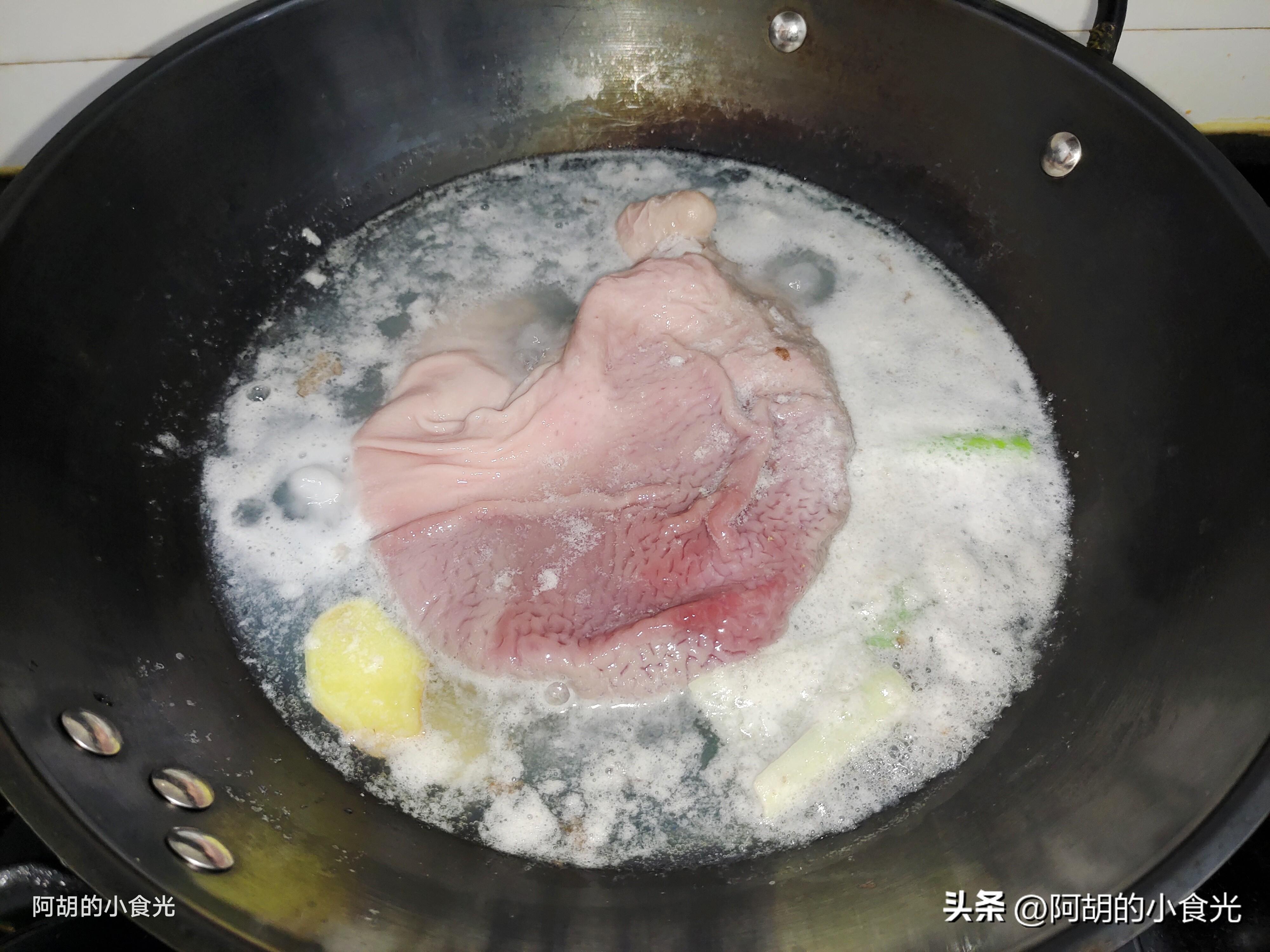 記住了,鮮豬肚一定要處理乾淨一些,黏液要用澱粉和食鹽多多地搓洗,焯水後要把表面的一些脂肪顆粒也剪掉。