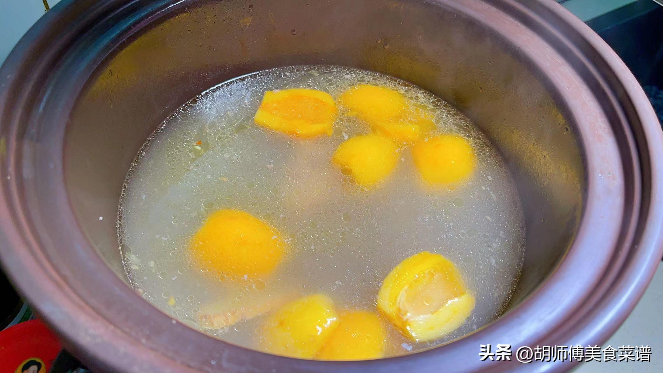 第五步:將泡在水中的枇杷撈出放入砂鍋中,同時加入適量食鹽,將它們攪拌均勻後,繼續燉30分鐘即可食用。湯中不要加蔥,加蔥了反而會壓住湯本身的鮮香味。