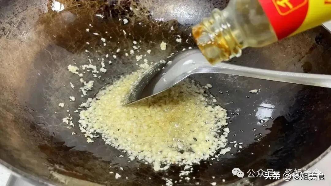 第二步:熬製靈魂蒜蓉醬大蒜去皮,全部切成蒜末,喜歡喫蒜香濃郁一點的,就多切點,我這次用了一整頭的蒜,炒出來滿屋都是蒜香味。小米辣切成圈,不能喫辣的朋友可以少放或者不放,不影響口感。起鍋燒油,鍋裏倒適量食用油,油熱之後轉小火,把蒜末倒進去慢慢炒,炒到蒜末變成金黃色,散發出濃郁的蒜香味,這時候把小米辣也倒進去,翻炒幾下,激發出辣椒的香味。然後往鍋里加生抽、蠔油、老抽、白糖,翻炒均勻,讓調料和蒜蓉融合在一起,靈魂蒜蓉醬就熬好啦,盛出來備用,光聞着都流口水。