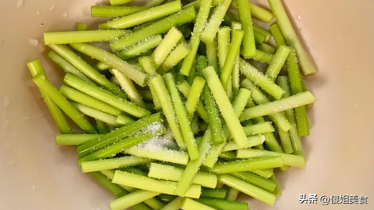很多人做涼拌蒜薹,直接焯水或者直接醃,其實都不對。想要蒜薹脆嫩爽口,第一步的處理特別重要。