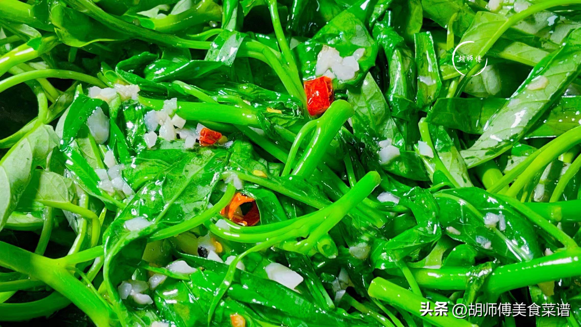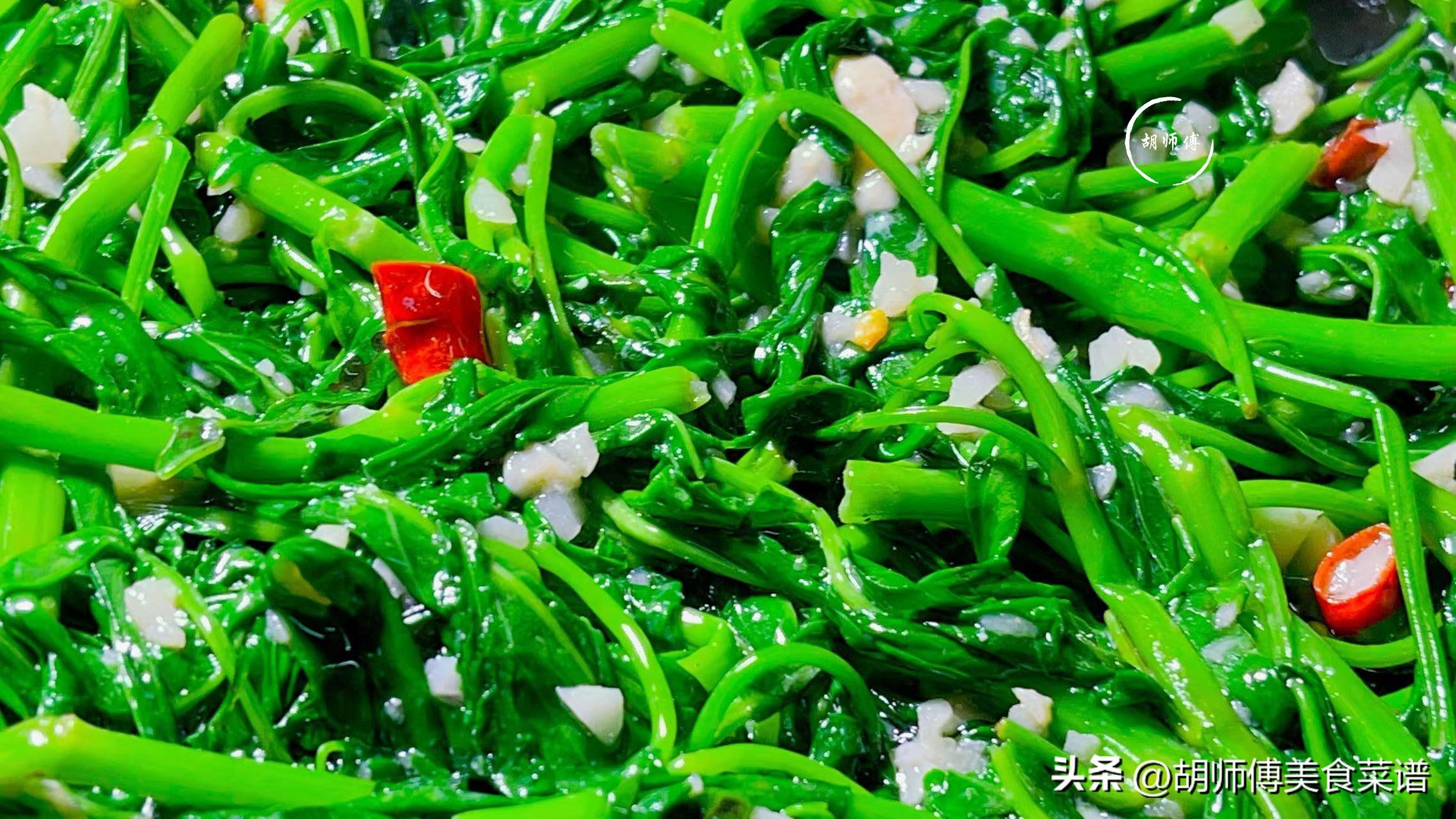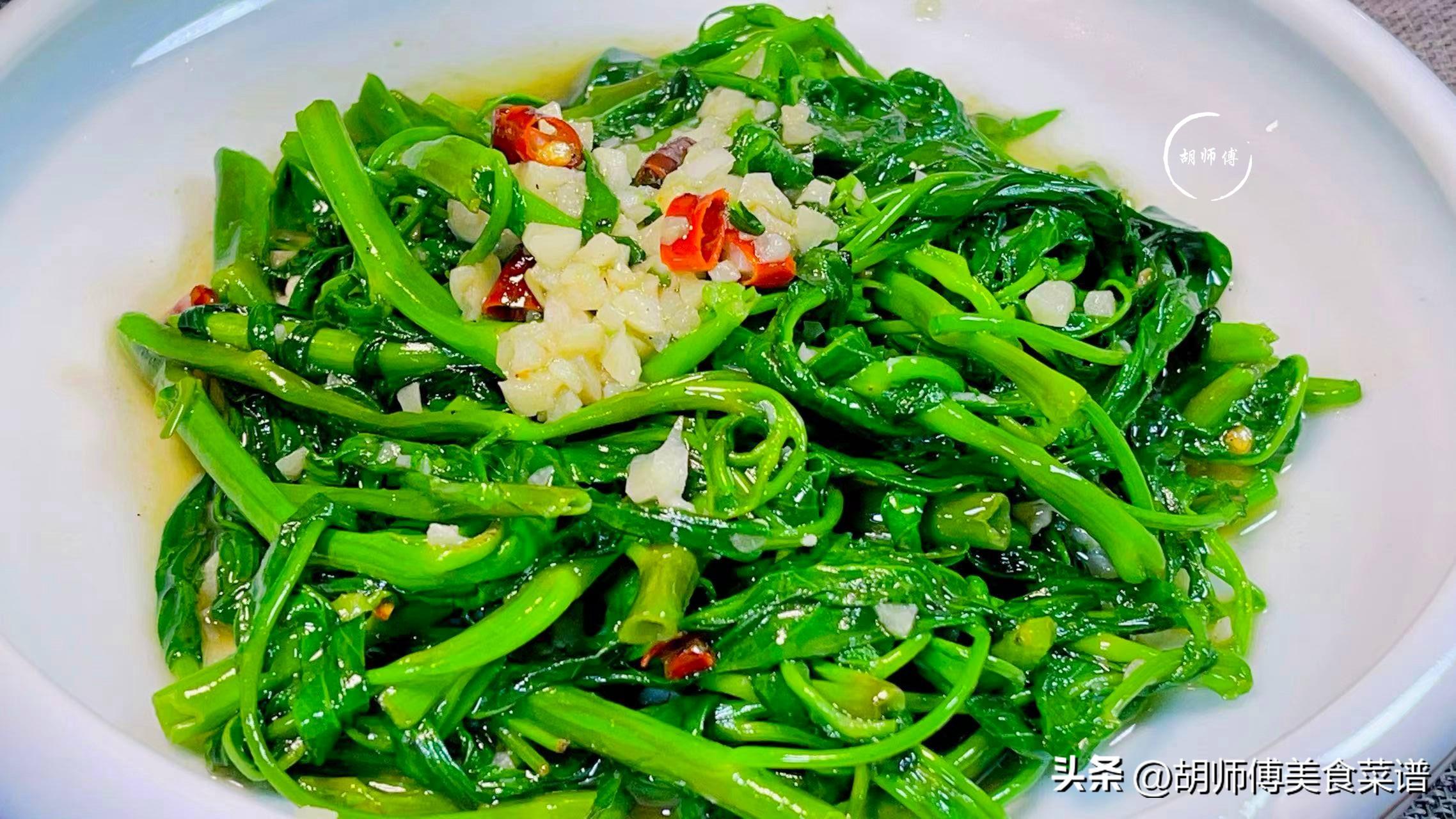 【食材準備】:通菜300克、蒜末10克、白腐乳一塊、蒜末10克、幹辣椒3克、食鹽、米醋、食用油適量。