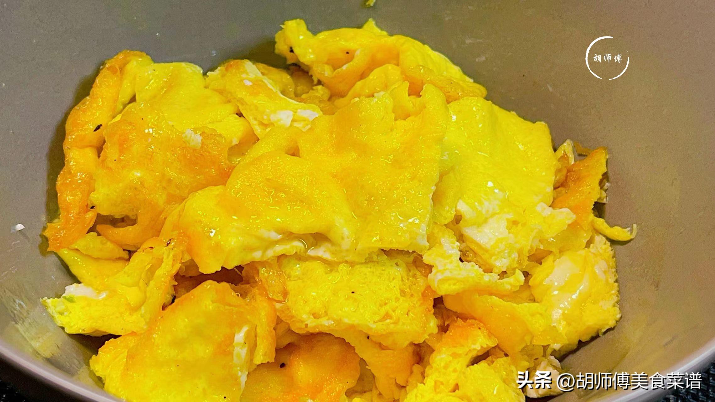 第二步:把雞蛋放入碗中攪拌成蛋液,然後鍋中放入適量油,等油燒熱後,將蛋液放入鍋中,接着慢慢炒蛋液,直到將雞蛋炒成蛋皮即可起鍋。