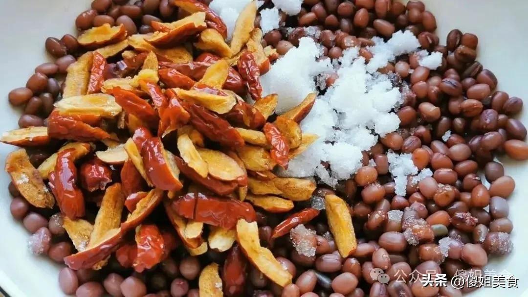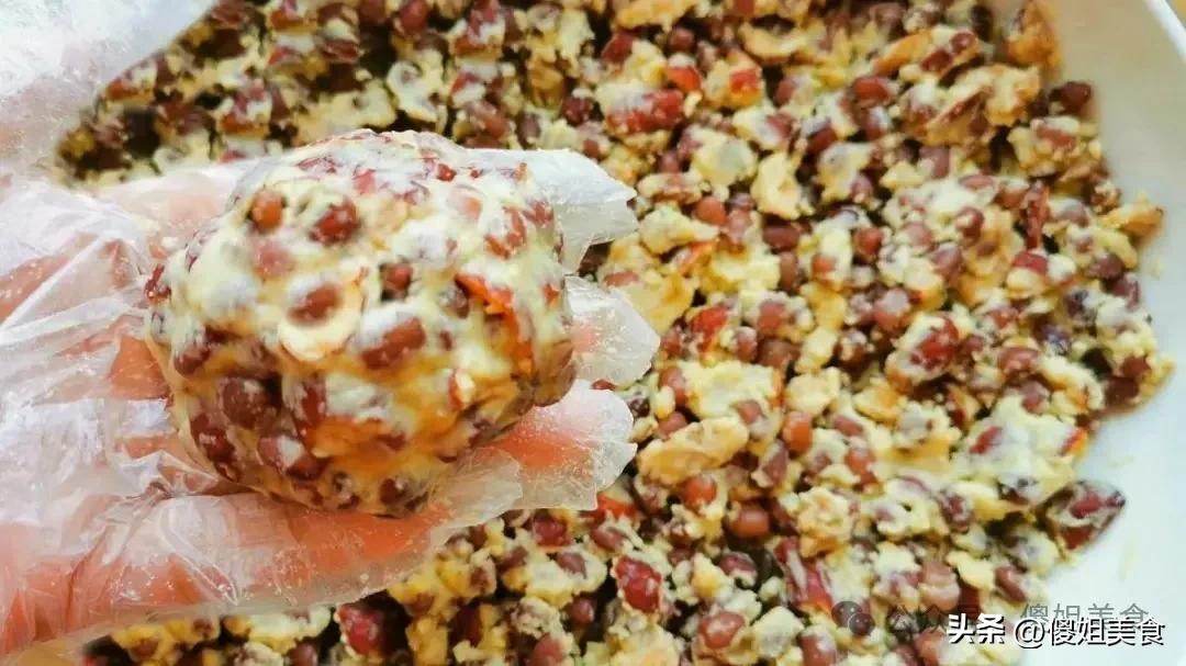 詳細做法,一步一步跟着做第一步:煮紅豆,煮到軟爛出沙1. 提前泡好的紅豆,淘洗乾淨,放進鍋裏,加沒過紅豆2指的清水,大火燒開。2. 燒開後轉中小火,蓋蓋子煮15-20分鐘,煮到紅豆一抿就化、輕輕一壓就出沙的程度,關火。3. 把煮好的紅豆撈出來,控掉多餘的水分(煮紅豆的水別倒!可以當紅豆水喝,甜甜的超好喝),放在一邊晾涼。第二步:處理紅棗,增加甜味和口感1. 紅棗洗乾淨,用剪刀把棗核去掉,再剪成紅棗碎,大小跟紅豆差不多就行,不用切太碎,喫的時候能喫到紅棗肉,口感更豐富。2. 把剪好的紅棗碎,放進晾涼的紅豆裏,再加入白糖,用勺子翻拌均勻,讓每一顆紅豆都裹上糖,紅棗的甜味也能滲進去。