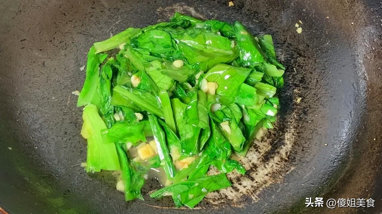 ⚠️ 關鍵要點:大火快炒是脆嫩的核心,小火慢炒會讓油麥菜出水、變軟、發苦,一定要全程大火,快速翻勻。