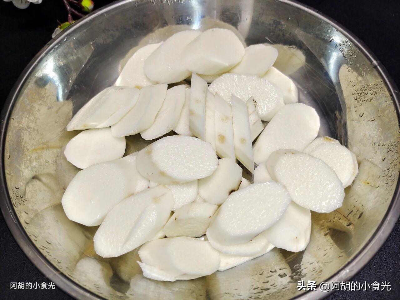 第一步:取出山藥將外表的泥土雜質清洗乾淨,而後準備好一次性的手套戴好,將山藥的外皮削掉,一定不要讓山藥黏液沾染到皮膚哦,防瘙癢難耐。而後我們再將山藥切成厚片放入碗中備用。