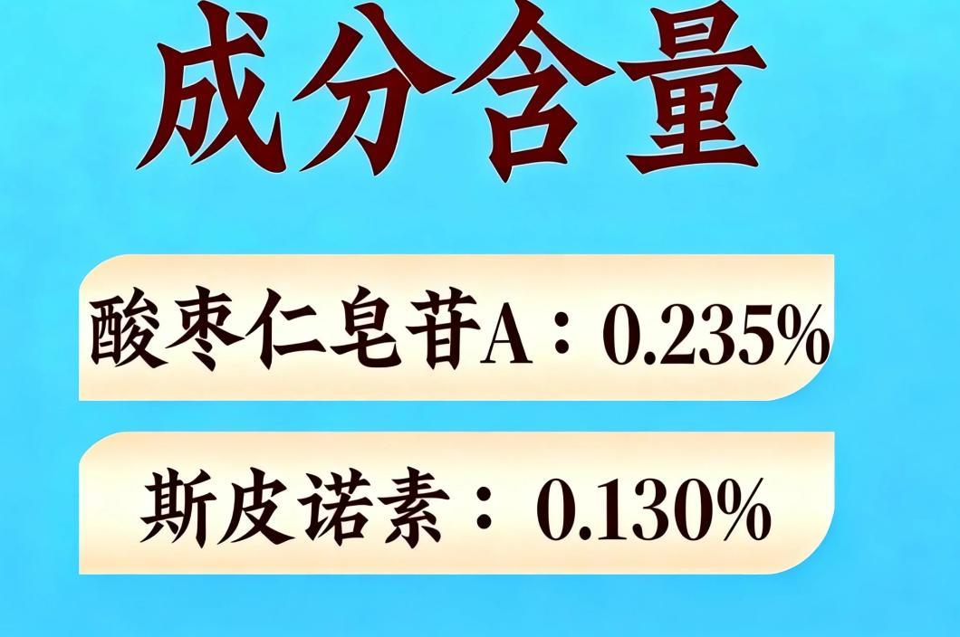 更精細的篩選邏輯,使得原料內部有效成分的集中程度進一步提升。檢測數據顯示,符合該標準的酸棗仁,其酸棗仁皁苷A含量穩定在0.235%以上,而基礎參考標準爲0.03%。從數值對比來看,前者約爲後者的7倍以上。這種差異並非單一批次結果,而是長期篩選累積的體現,使整體成分密度更加集中。對於日常使用者而言,在常規用量下即可獲得較爲充足的營養支持,無需額外增加攝入量,從而提升整體使用效率。