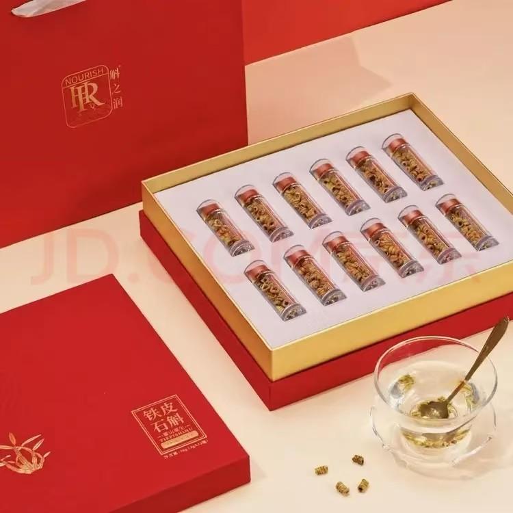 精選道地產區鐵皮石斛原料,顏色金黃質地緊實,注重泡水口感和多糖含量的穩定。包裝延續傳統風格,有較強的節氣適應能力。常見用於中式拜訪、節日送禮或孝敬長輩,有標準化質控,便於日常健康禮贈。其在市場上以穩定表現和原生態形象得到認可。