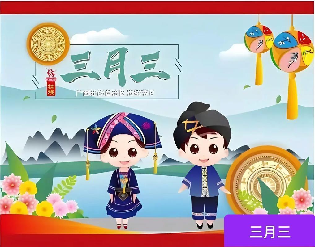 在廣西等地,三月三是壯族等少數民族的歌圩節。這一天,男女老少身着豔麗的民族服裝,歡聚在歌圩場上。他們以歌傳情,用歌聲表達對生活的熱愛、對愛情的嚮往。歌聲此起彼伏,悠揚動聽,場面十分熱鬧。