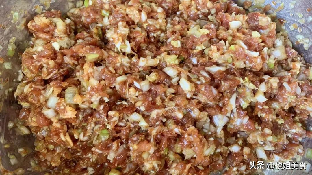 步驟二:調餡,槐花不柴的祕訣1. 處理槐花:如果是凍槐花,直接拿出來不用解凍,開水下鍋焯30秒,快速撈出過涼水,擠幹水分,切成小段備用。新鮮槐花也一樣處理,焯水可以去掉一點澀味,口感更好。2. 處理肉餡:肉餡里加蔥薑末、生抽、蠔油、十三香,順着一個方向攪拌上勁,然後分幾次加一點清水,讓肉餡吸飽水分,這樣蒸出來纔會嫩,不發柴。3. 混合餡料:擠幹水分的槐花裏,先倒一勺食用油拌勻,這是鎖住水分的關鍵!再把調好的肉餡倒進去,加適量鹽和香油,最後放切碎的韭菜,拌勻就行。