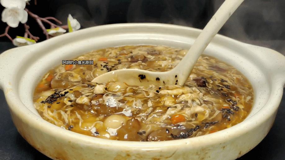 藕粉的濃稠度按照自己的喜好來調整,喜歡粘稠拉絲的狀態就可以多加入一些藕粉粉漿,喜歡稀一些的湯水,則少加入一些即可。