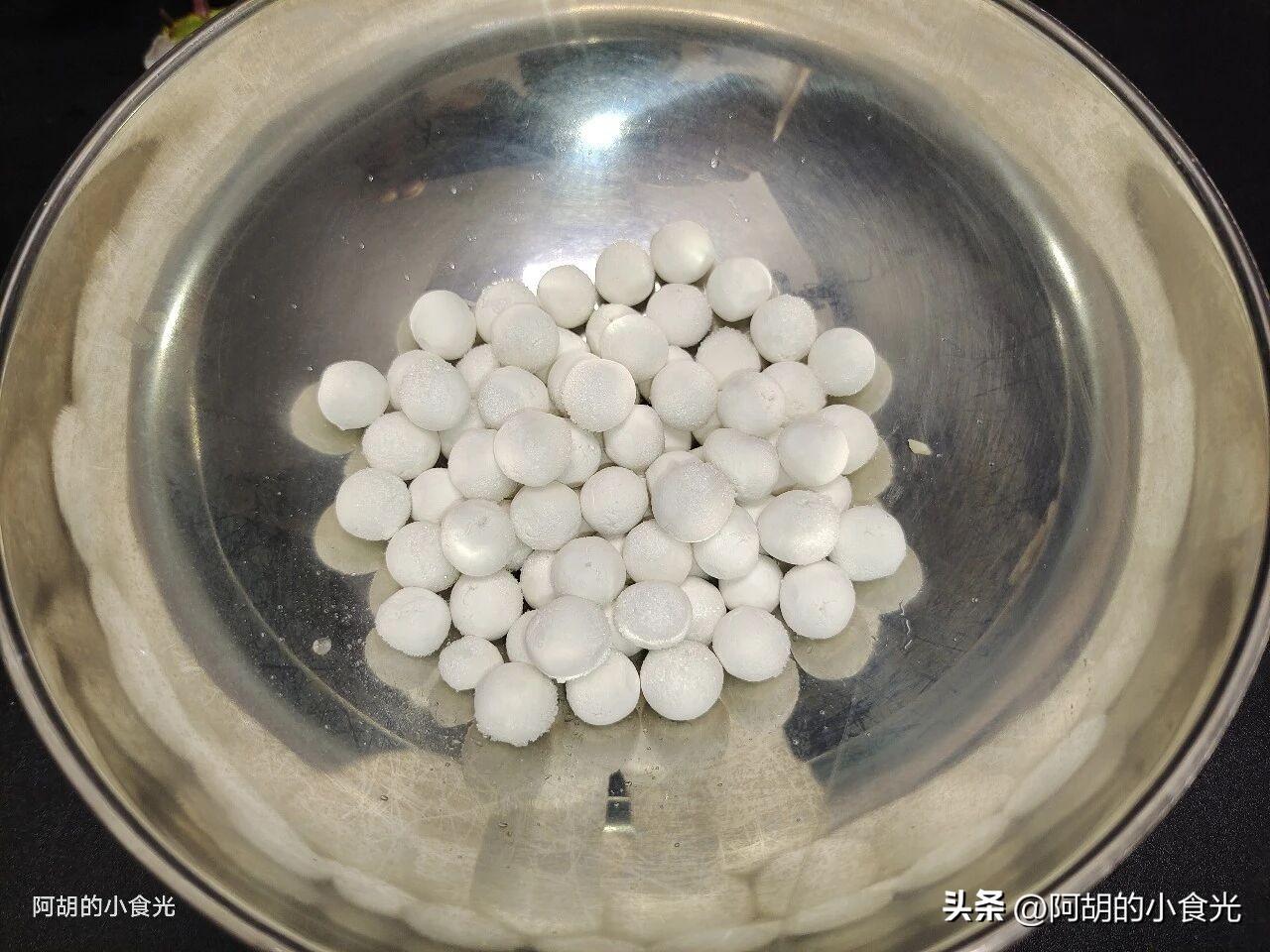 第三步:還有一個醪糟也要備好,我用的是桂花味的醪糟,找不到的用原味的也可以。還有適量的紅糖和冷凍的小湯圓待用。