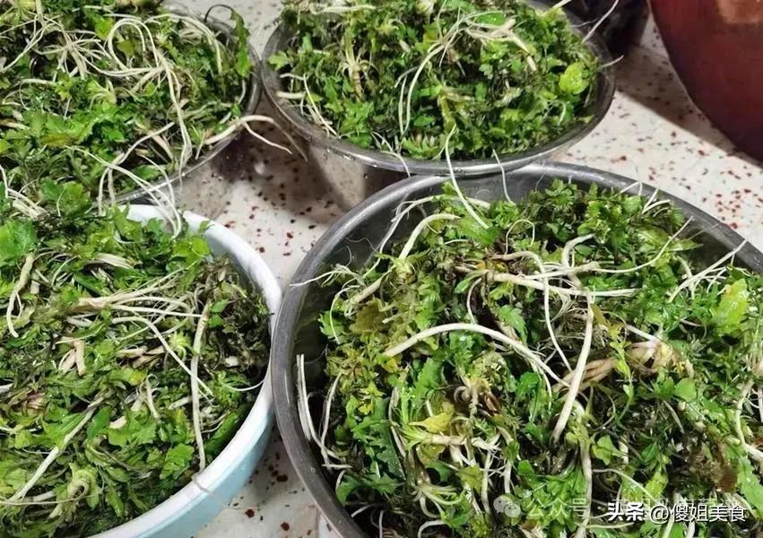 剛挖回來的薺菜,看着新鮮,可葉子裏藏着不少泥土和小蟲子,處理起來得有點耐心。先把薺菜的老根、黃葉摘掉,只留最嫩的部分,尤其是那種貼着地長的,根鬚裏裹着泥,得一根根捋乾淨。然後找個大盆,接滿清水,把薺菜放進去泡上十分鐘,再用手輕輕搓洗葉子和根部,反覆換三四次水,直到盆底再也看不到泥沙,葉子也變得清清爽爽。洗好的薺菜,我習慣分成一小份一小份的,裝在盆裏,看着這一盆盆綠油油的,心裏別提多滿足了。
