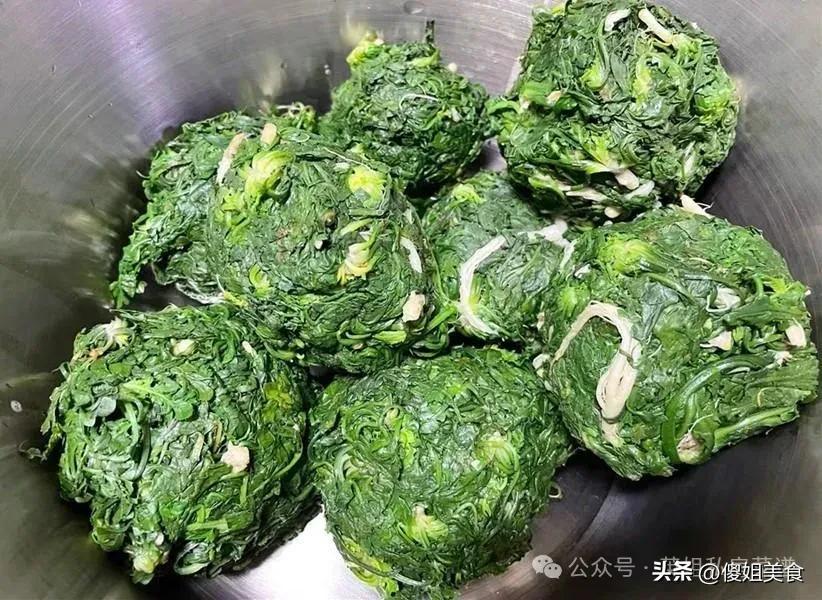 晾好的薺菜,接下來就是擠水分了。我喜歡把薺菜分成拳頭大小的份,放在手裏用力擠,把裏面的水分擠得乾乾淨淨,捏成一個個緊實的菜糰子。擠得越幹,保存的時間越長,也不會佔太多冰箱空間。擠好的菜糰子,一個個放進保鮮袋裏,每袋放一個,或者按每次喫的量分裝好,紮緊袋口,寫上日期,直接放進冰箱冷凍層就行。想喫的時候,不用解凍,拿出來用溫水泡一下,或者直接切碎放進鍋裏煮,和新鮮的薺菜幾乎沒區別。我家冰櫃裏,一到春天就會被這些菜糰子塞得滿滿當當,從春天一直喫到冬天,每次拿出來,都能嚐到一口春天的鮮。