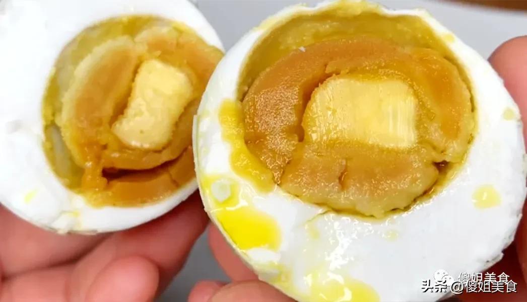煮好的鹹鴨蛋,趁熱掰開,蛋黃的油都能流出來,沙糯的口感配上白粥,簡直絕了。要是一次醃得多,喫不完的可以放在冰箱裏冷藏,能放好幾個月呢。