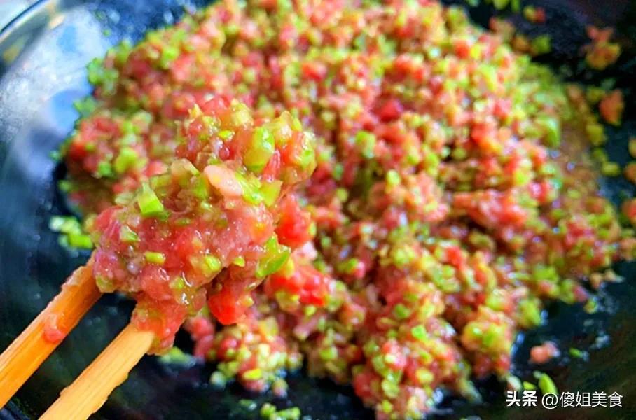 芸豆控幹水之後,先切成小丁,再剁成碎末,別剁得太爛糊,有點顆粒感喫着才香。你看我這碗裏的芸豆碎,綠瑩瑩的,看着就有食慾。