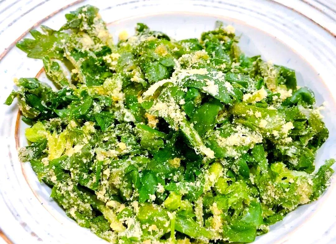 食材;芹菜葉,麪粉,鹽,蒜泥、生抽、醋、辣椒油