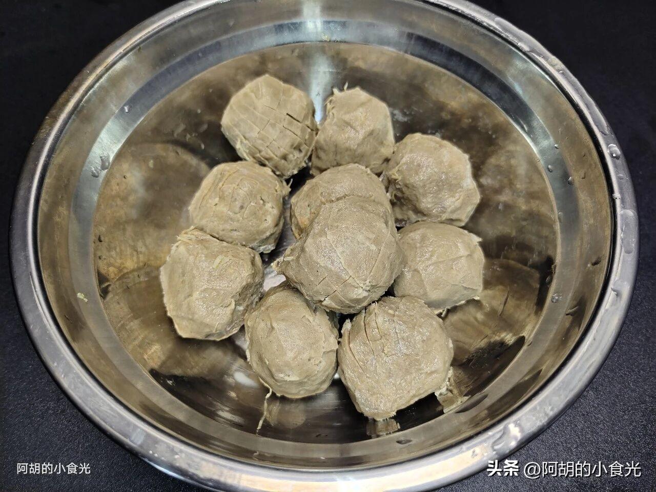 第二步:再來準備一些牛肉丸,今天的這個牛肉丸質量不錯,是純牛肉的。冷凍的可以直接下鍋烹飪,我這裏爲了增添一些花樣,將牛肉丸解凍後在其表面切了一個花刀。而後再準備一些乾的海帶結,用溫水充分浸泡3個小時左右,充分泡軟後再清洗幾遍,擠幹水分待用。還有就是一些小料蔥蒜末,還有一小把的枸杞備用。