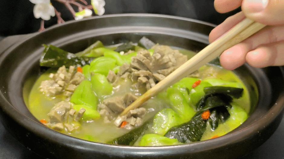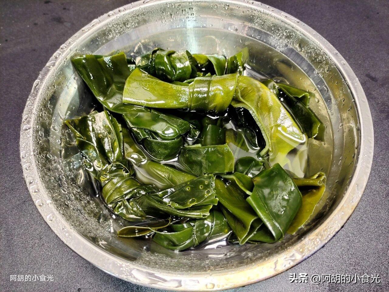 我今天用的是幹海帶結,需要泡的久一些,你也可以用其它的海帶,或者用裙帶菜也是可以,可以給這道菜增添很多鮮味。