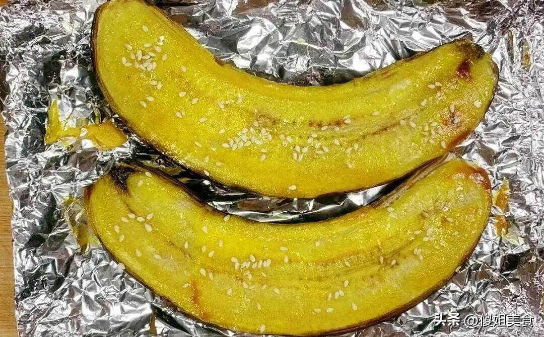 很多人問我,這烤香蕉,到底有什麼好喫的?你想啊,生香蕉是脆生生的,甜得有點單薄。可烤過之後,香蕉裏的水分蒸發了一部分,甜味被濃縮了,變得更濃郁。果肉也從脆生生的,變成了糯嘰嘰的,咬一口,軟軟的,綿綿的,帶着芝麻的香,別提多滿足了。