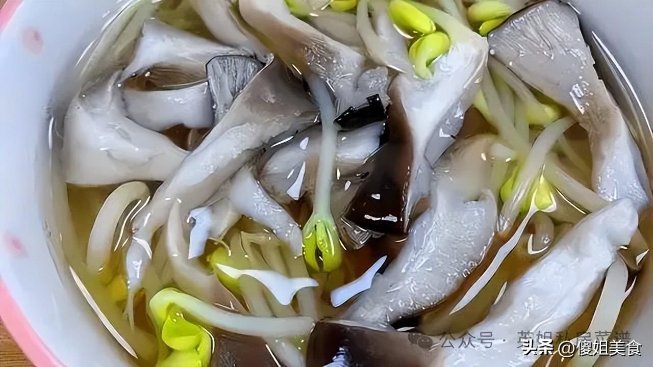 第二步:先給菌菇“焯個水”,喫着更放心鍋裏燒一鍋開水,水開後把洗好的平菇和黃豆芽放進去焯燙30秒,撈出來瀝乾水分。這一步不僅能去掉菌菇的腥味,還能讓後面炒的時候不那麼容易出水,喫起來口感更脆嫩。第三步:煎雞蛋,做滑蛋的關鍵1. 碗裏打入雞蛋,加一點點鹽攪勻備用。2. 鍋裏倒一點點油,油熱後把蛋液倒進去,用筷子快速劃散,炒到雞蛋微微凝固、還是嫩嫩的狀態,就盛出來備用。劃重點:滑蛋一定要炒得嫩一點,別炒老了,不然喫起來口感會柴。