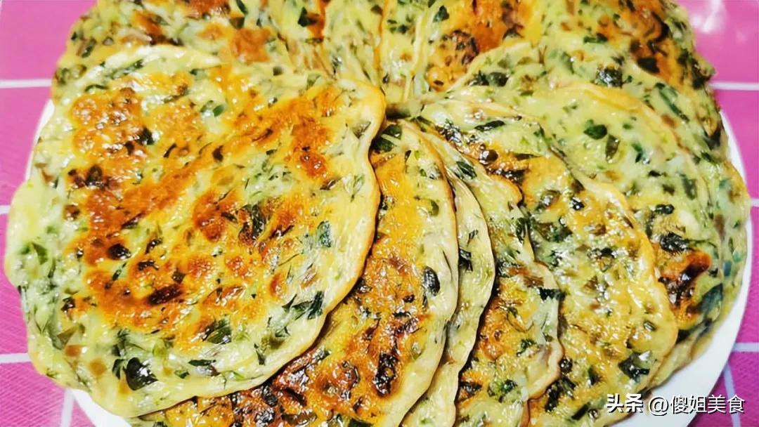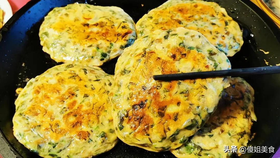 4. 剛煎好的餅,外酥裏嫩,咬一口全是馬齒莧的清香,還有雞蛋的蛋香,熱乎的時候喫最香了!
