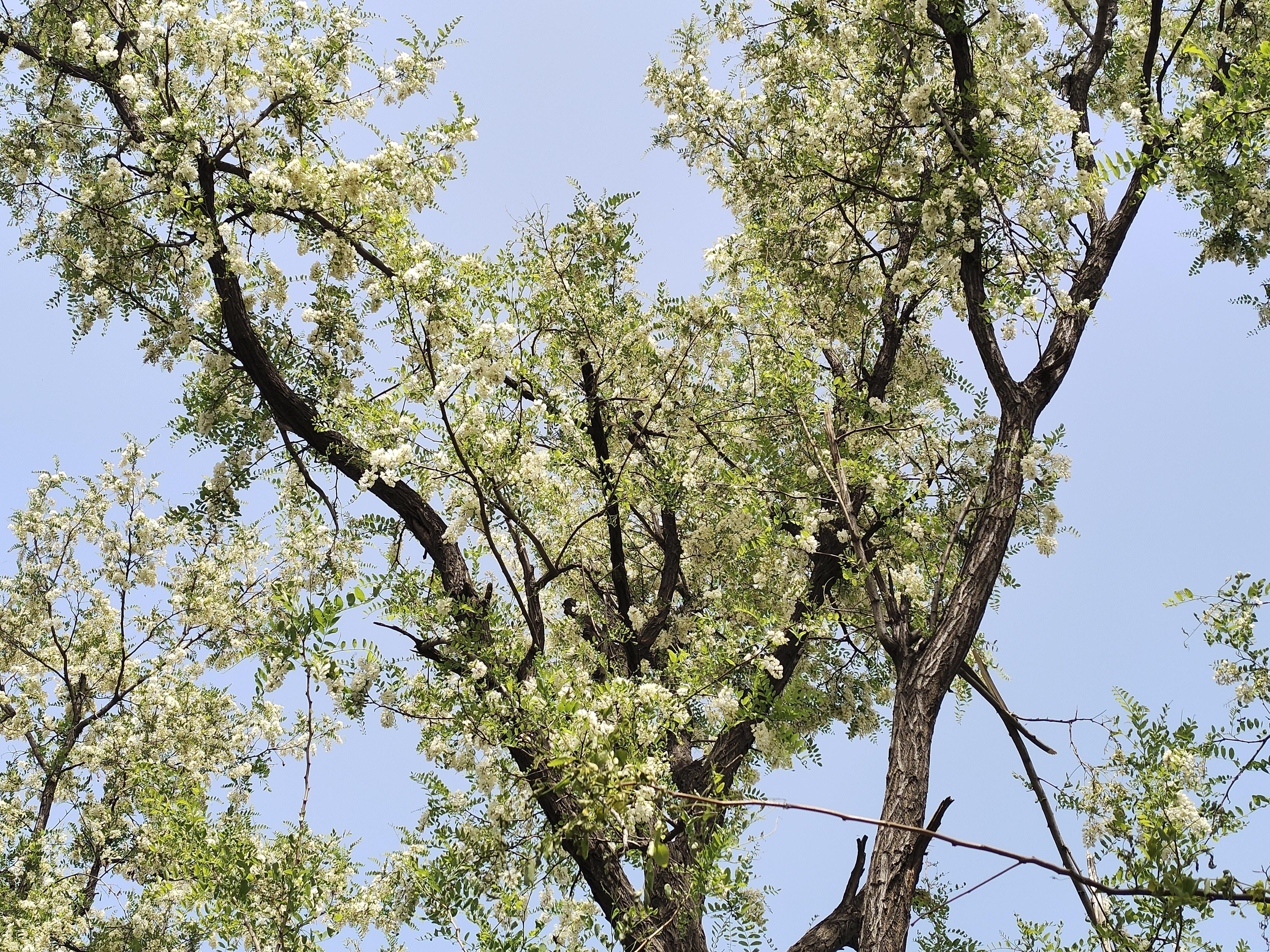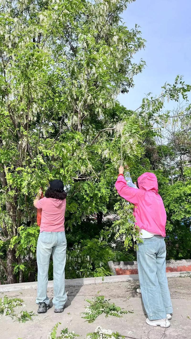 槐樹通常很高,攀爬採摘非常危險。欣賞美景時,請務必在安全區域活動,切勿爲了採摘而冒險上樹。
