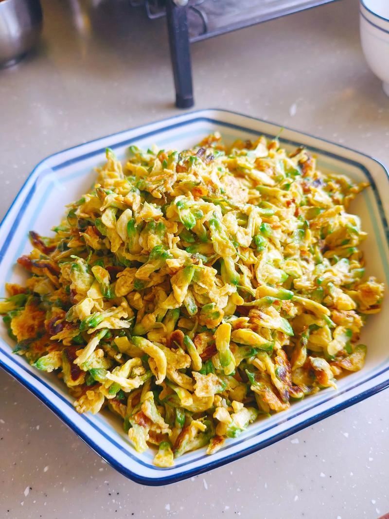 這道菜最家常,清香軟嫩,下飯又快手,幾塊錢就能炒一大盤。雞蛋的嫩滑與槐花的清香在舌尖上完美融合,讓人回味無窮。