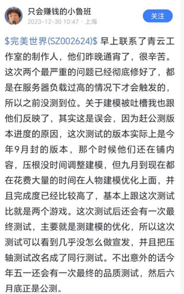 事後有舅舅黨表示,這次建模崩壞的BUG是由於服務器負債過高引起的,且拿出來測試的版本是今年9月的,大量的細節優化都沒做,所以呈現出來的畫面比較尬。