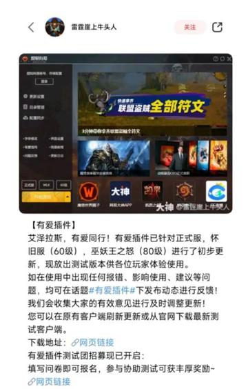 繼前段時間疑似官方人員搬運中文版《魔獸世界》10.0版本的完整CG與過場動畫之後,現在網易大神的魔獸專區又出現了疑似官方人員自己開發的中文版專屬插件,基本等於是自己實錘了國服新代理就是網易的消息。