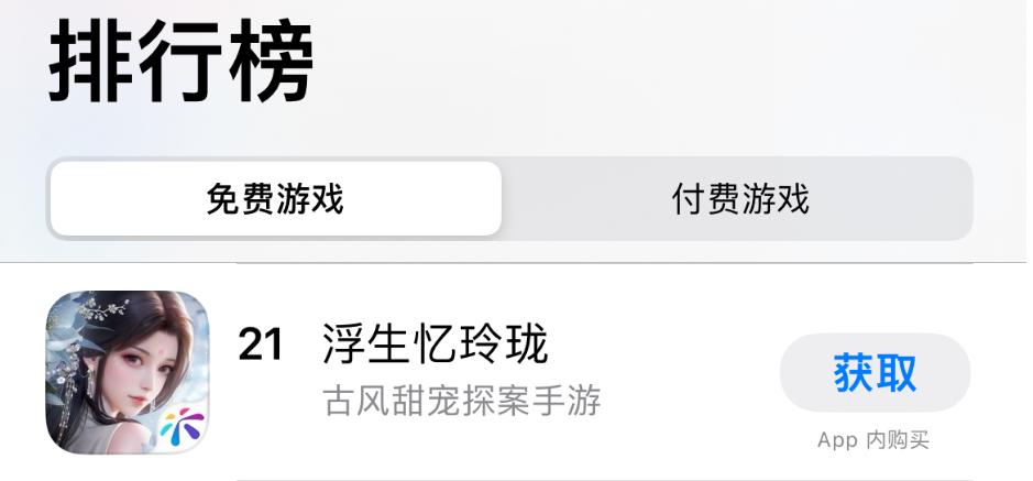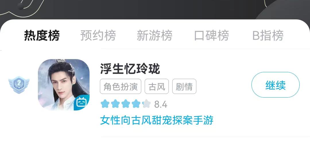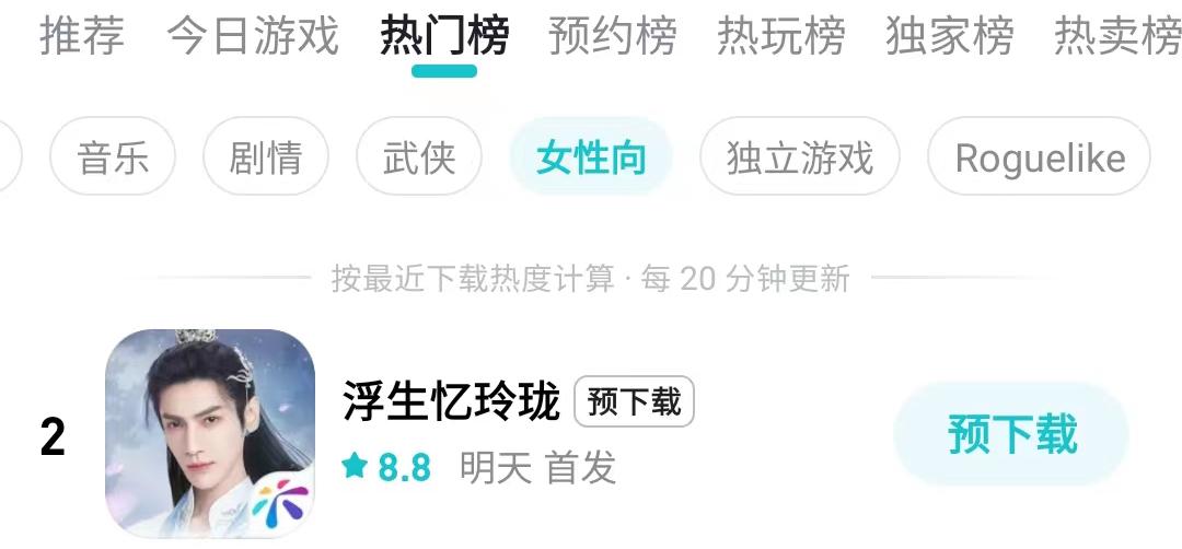 截至目前,這款遊戲全網預約量也已破600W。今日,《浮生憶玲瓏》也快速登上了TapTap熱門榜女性向分類、B站遊戲熱度榜的第2位,並衝到iOS免費榜第21位。