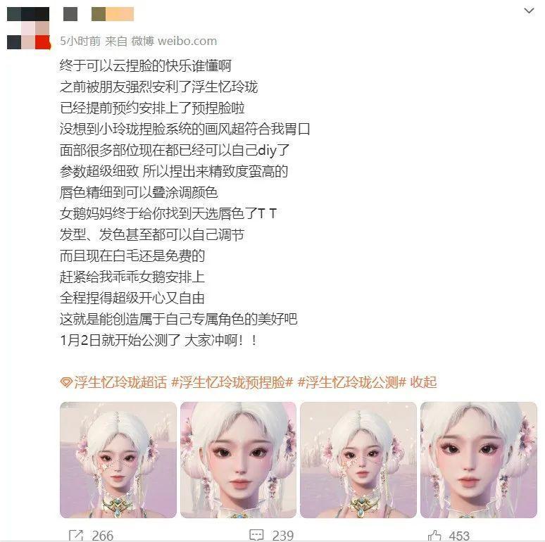最後,就微博、B站等平臺上的玩家討論和二創內容來看,在遊戲正式上線前,其捏臉系統、探案劇情、休閒及探索玩法,就已經收穫了不小的關注熱度。尤其是12月30日開放公測預捏臉後,網上更是湧現出不少新的玩家作品。