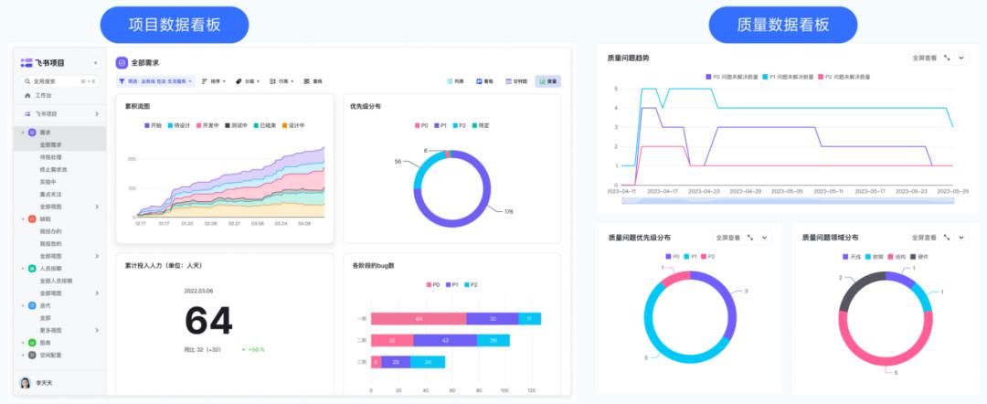 執行過程積累的數據沉澱在各個平臺上,數據清洗費時費力,往往滯後於數據變化。用飛書項目進行數據沉澱,能夠實現數據圖表實時推送,及時通知相關責任人,並支持各角色擁有定製儀表盤,讓數據看板符合實際需求。