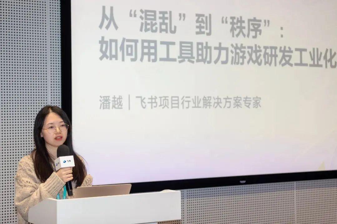 飛書項目行業解決方案專家潘越,則向大家分享瞭如何用工具助力遊戲研發工業化。潘越指出,處於轉型的關鍵時期,遊戲研發環節迫切需要工業化轉型。用先進工具規範項目管理流程,能幫助遊戲行業解決產品優化要求高、生產成本高、溝通成本高、研發質量管控難等痛點。飛書項目行業解決方案專家 潘越